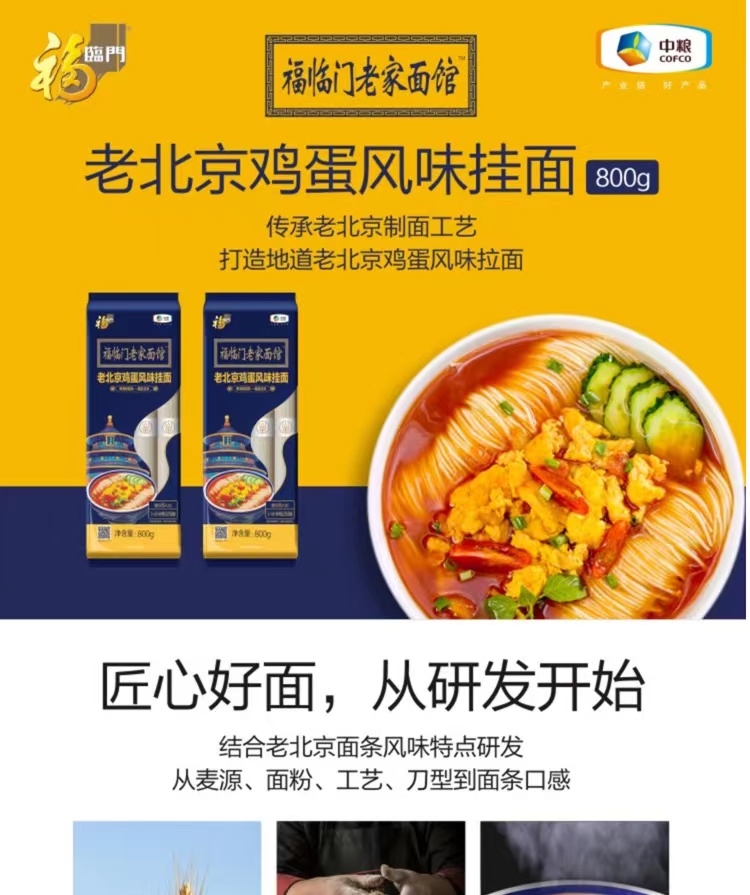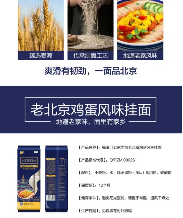 福临门老家面馆-老北京鸡蛋挂面800g*3袋 自然色