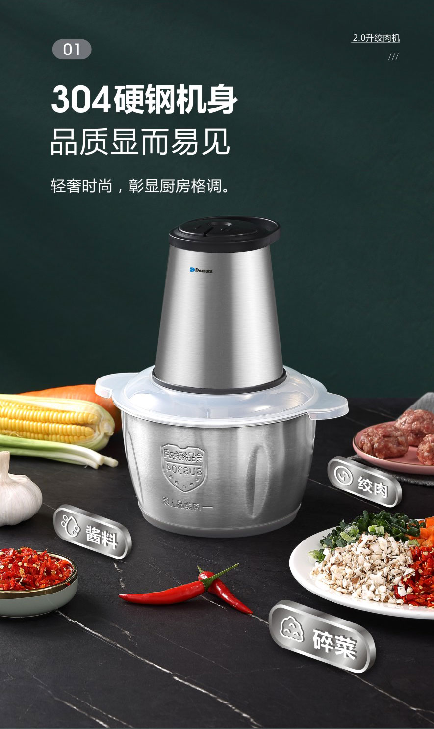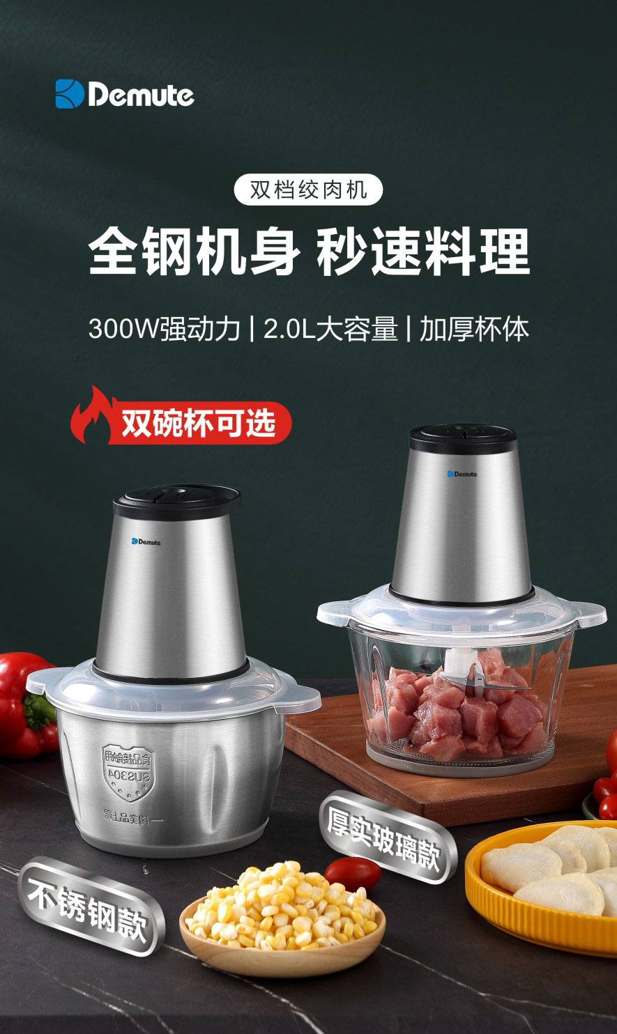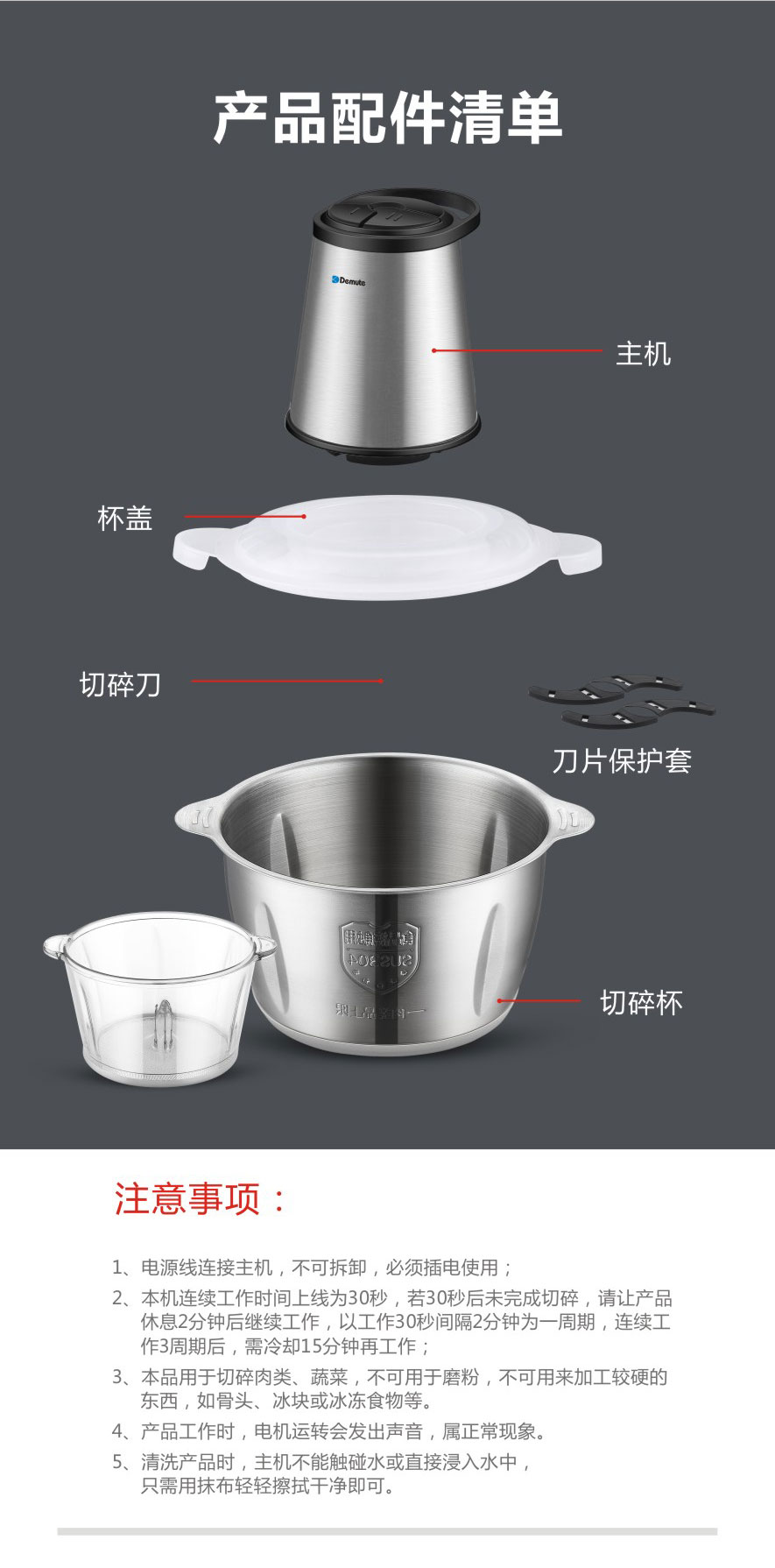 德慕特 碎肉机高硼硅玻璃碗2L DM-05(单位:台) 无色