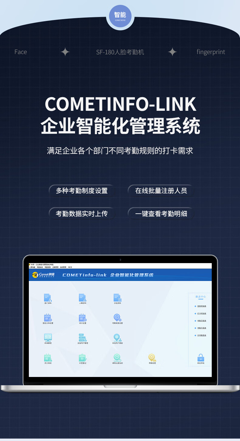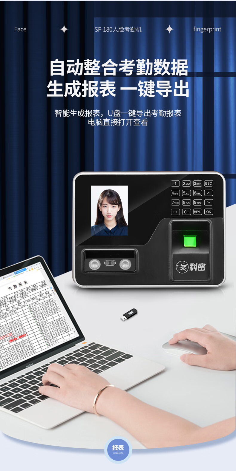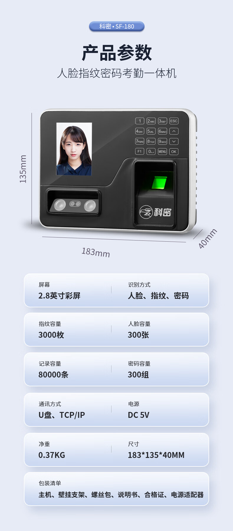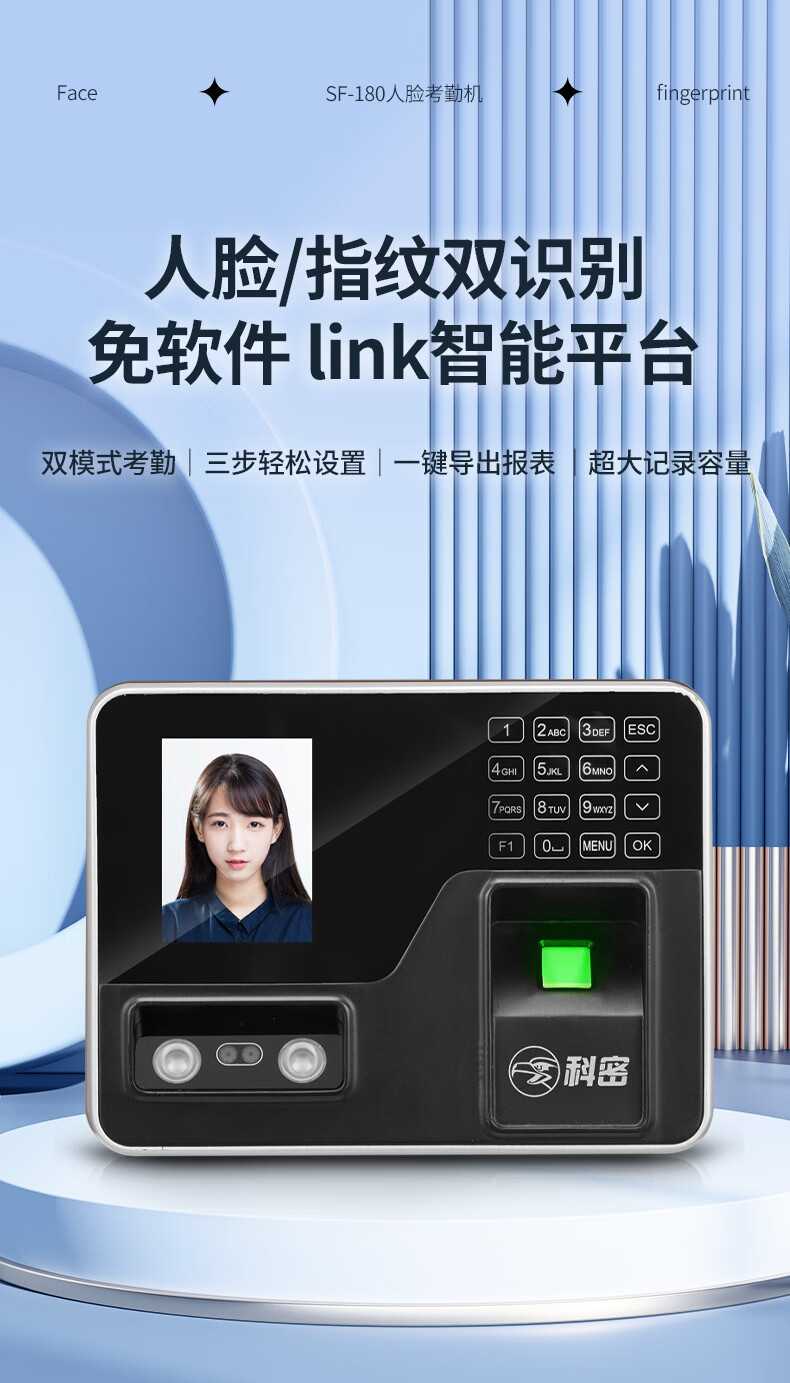 科密(comet) 人脸指纹混合识别考勤机 无接触打卡面部脸部识别考勤机 脱机考勤自动生成报表 SF-180 台 黑色