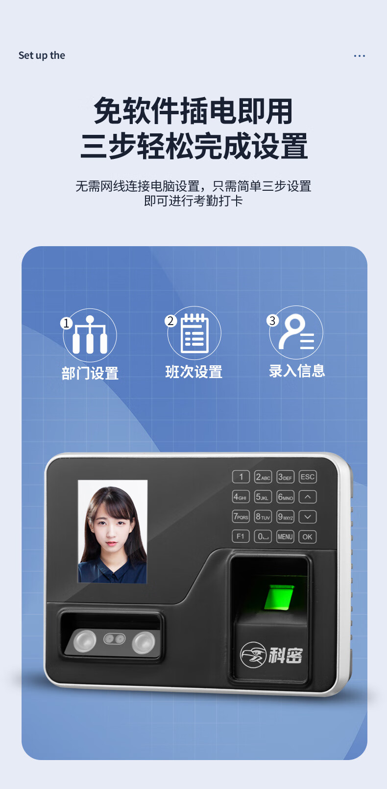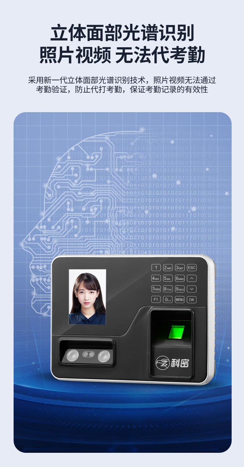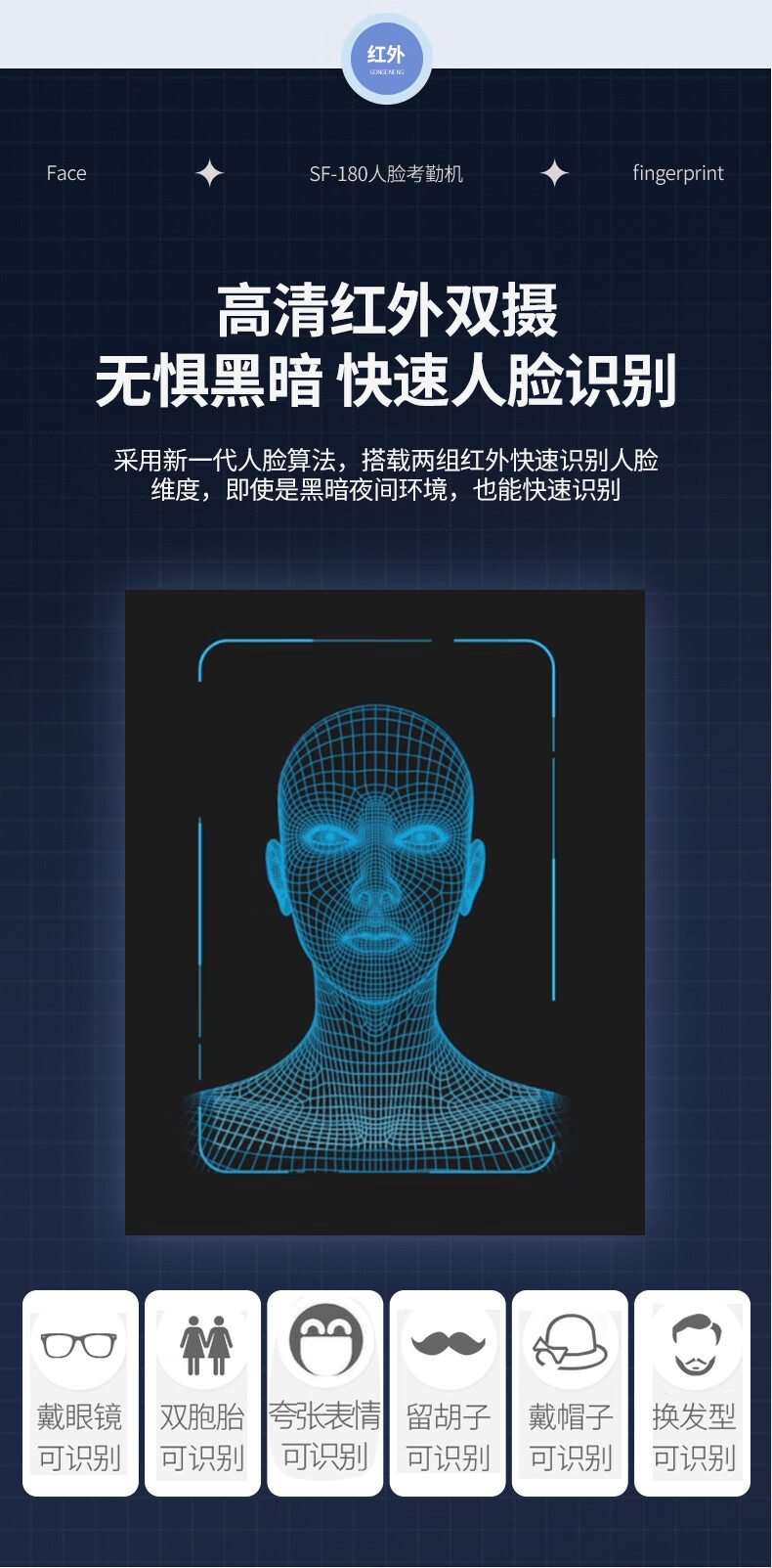 科密(comet) 人脸指纹混合识别考勤机 无接触打卡面部脸部识别考勤机 脱机考勤自动生成报表 SF-180 台 黑色