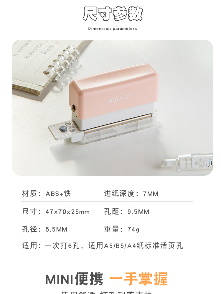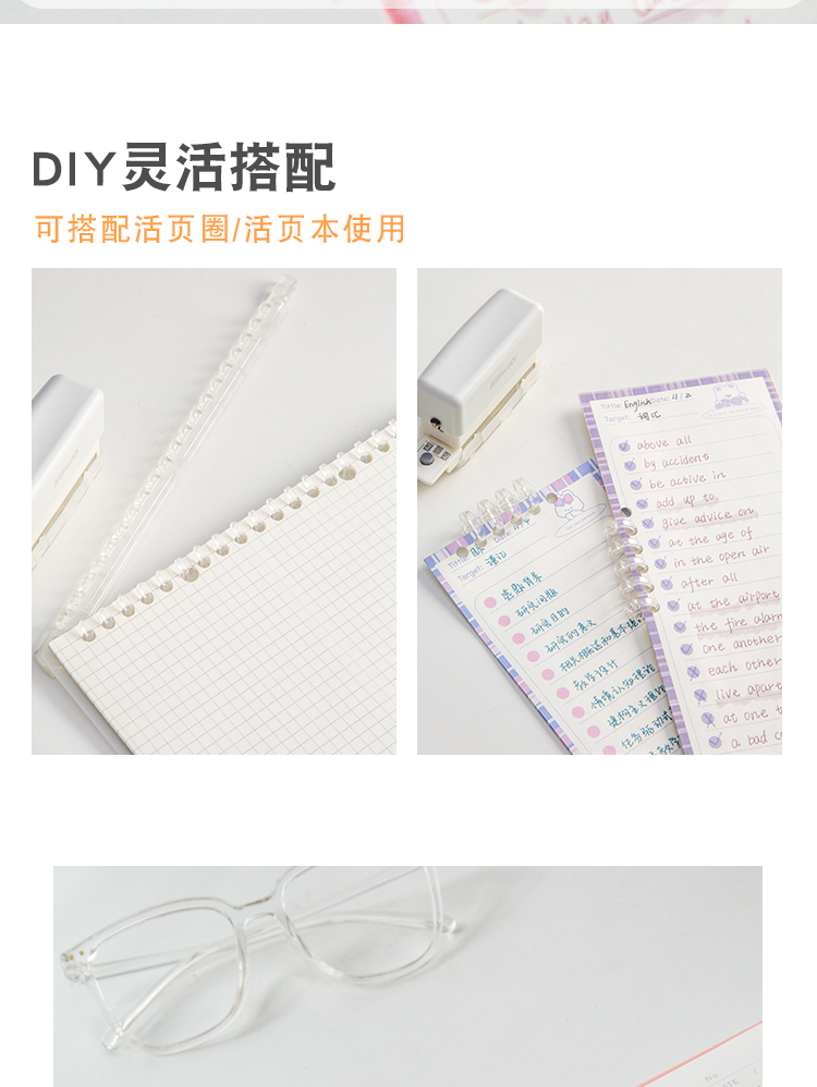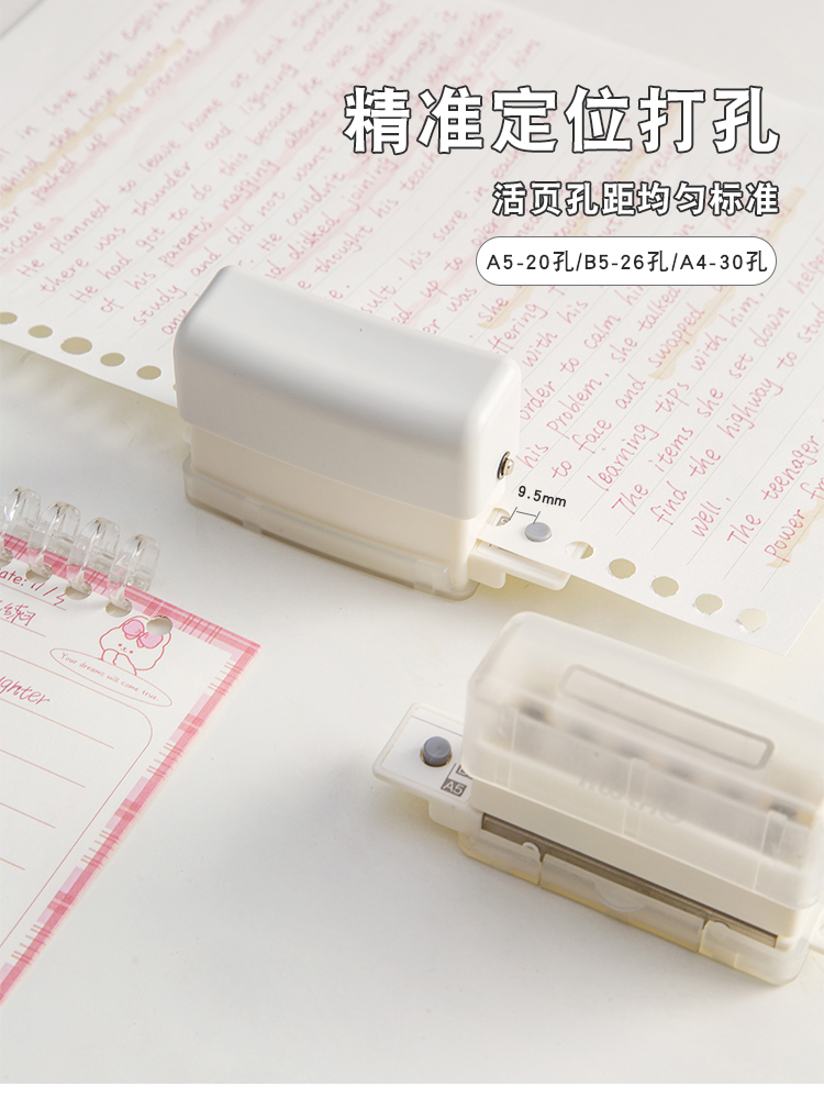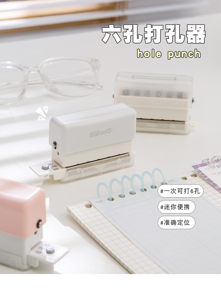 三年二班6孔打孔器活页本手账本小型打洞器家用压孔器圆环纸张打眼器迷你打孔机/个 白色