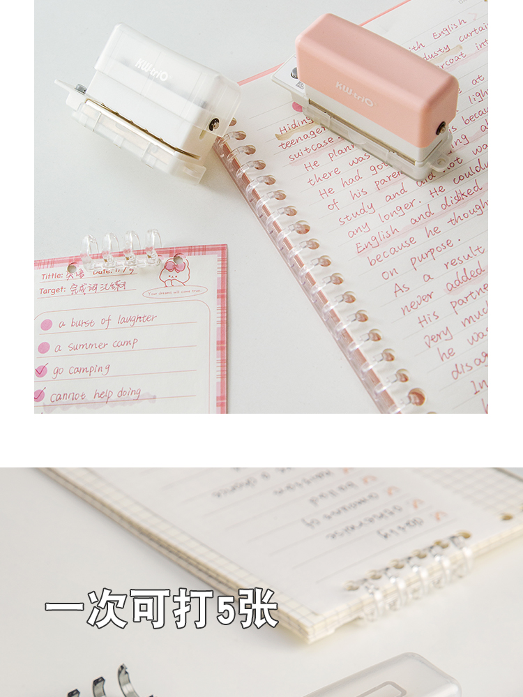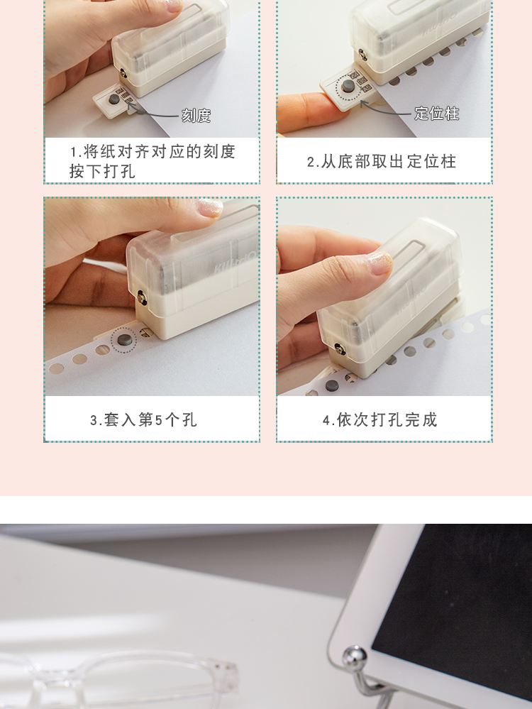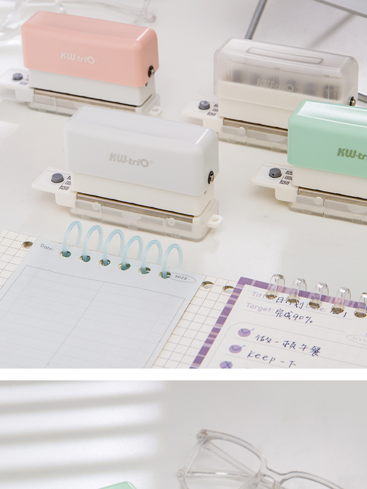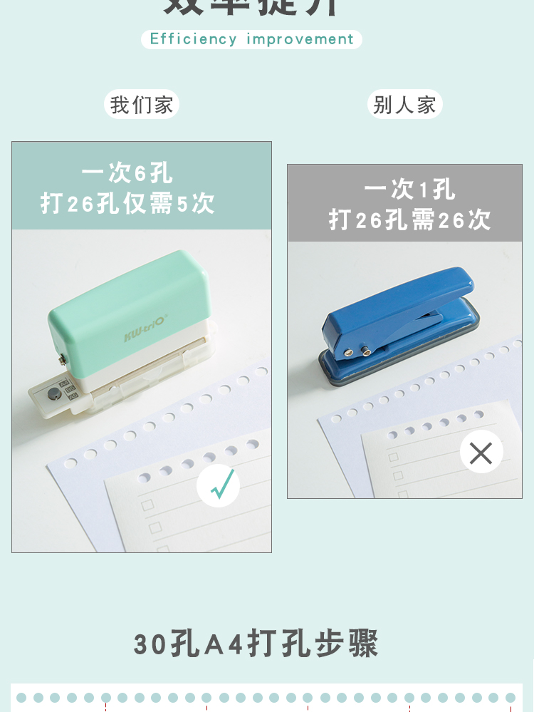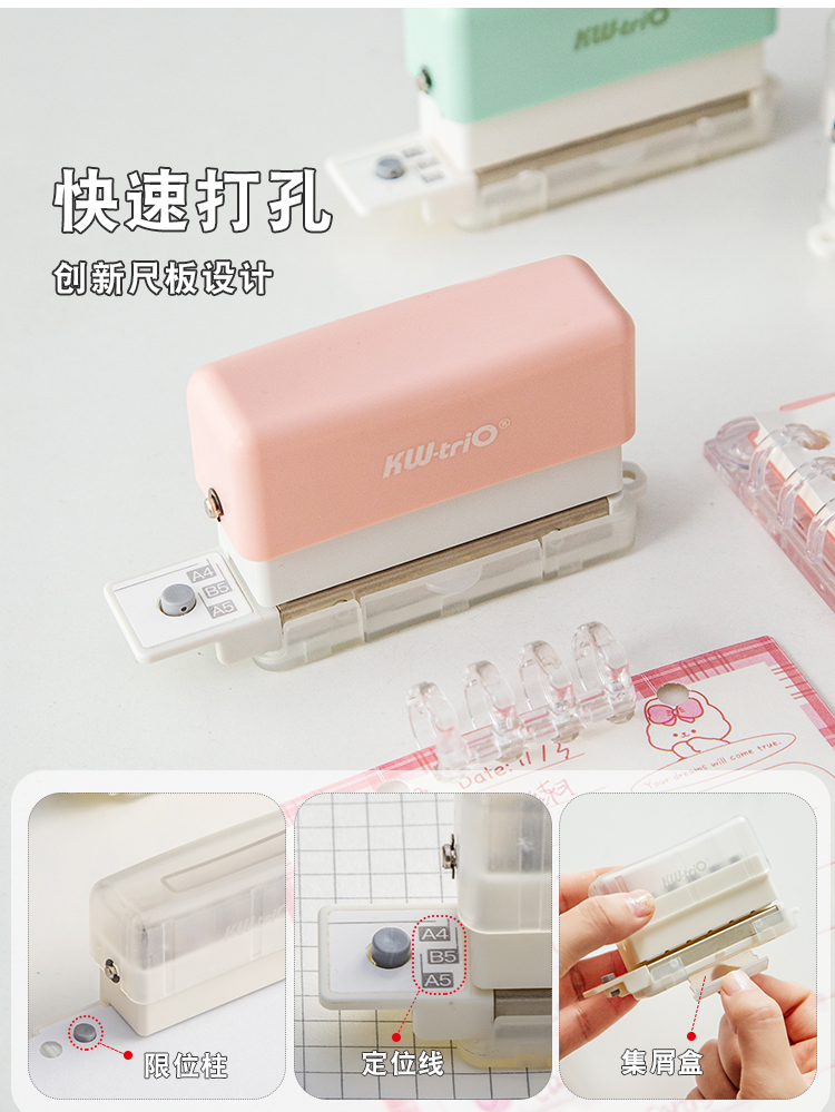三年二班6孔打孔器活页本手账本小型打洞器家用压孔器圆环纸张打眼器迷你打孔机/个 白色