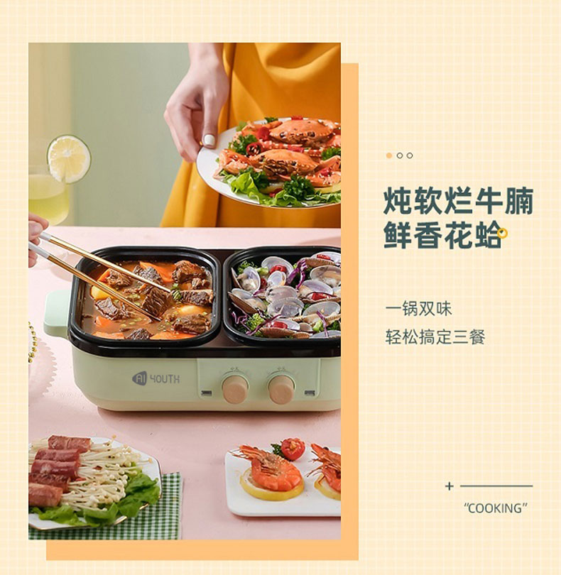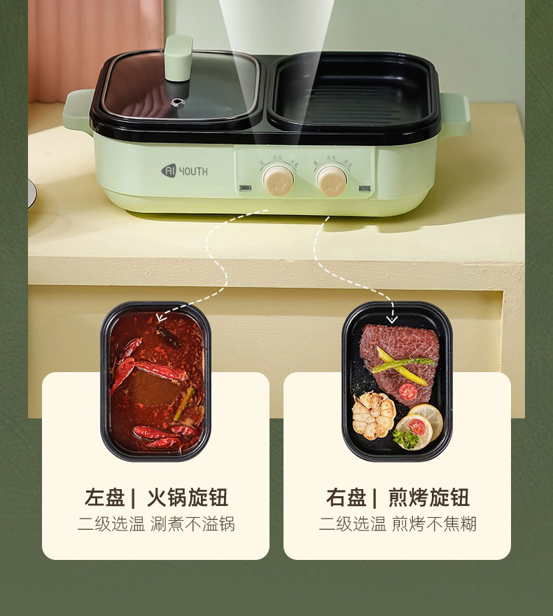 艾青春多功能电烤炉涮烤一体锅DYG-07(台) 绿色