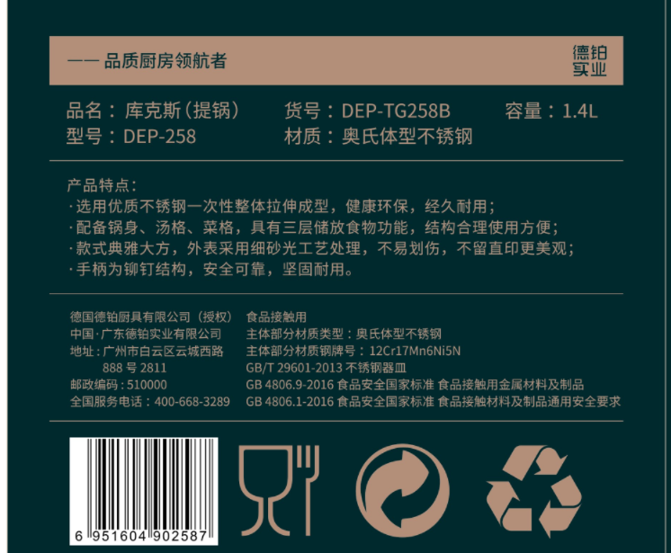 Debo(德铂) 库克斯 饭盒 2L DEP-258 (单位:个) 不锈钢色