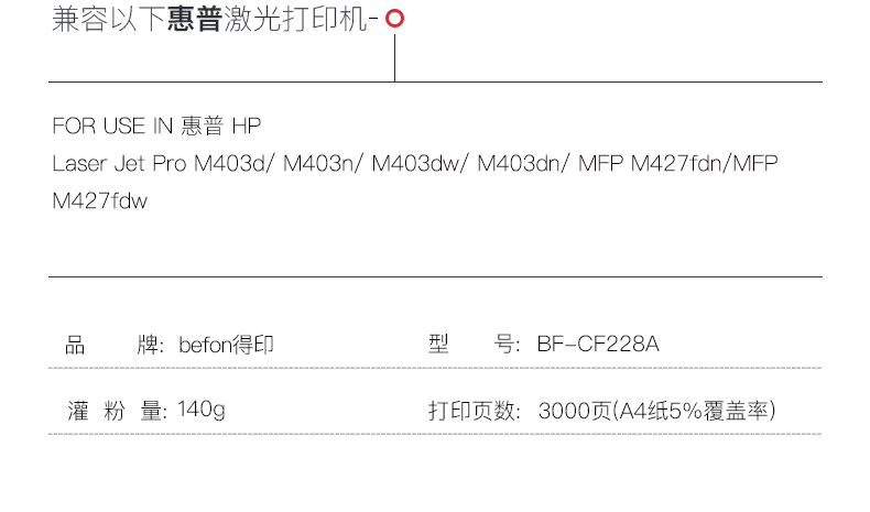 得印PLUS BF-CF228A黑色硒鼓 惠普M403d/M403dn/M403dw/单位:支 CF228A大容量易加粉硒鼓