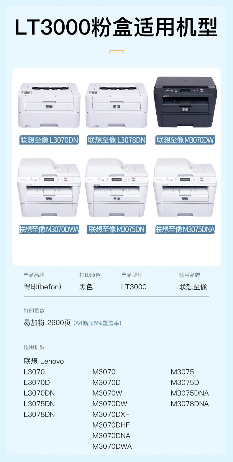 得印 LT3000黑色粉盒 联想至像L3070DN/D 3075DN 3078DN 单位:支 【2600页】LT3000标准版粉盒