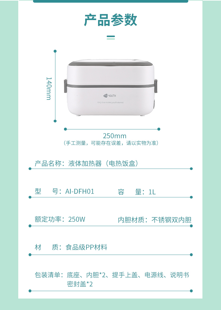艾青春(AIYOUTH)电热饭盒AI-DFH01(台) 白色