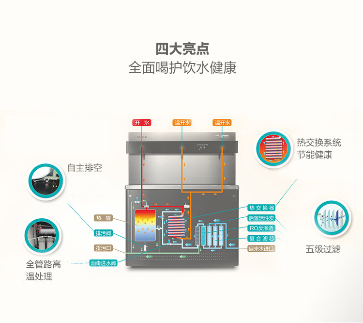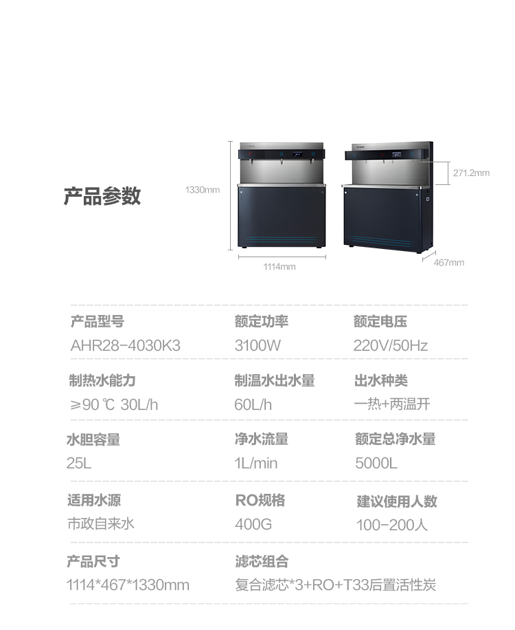 安吉尔商用步进式电热开水器不锈钢饮水台 学校办公楼 净化加热一体 商务直饮AHR2801-4030K3 黑色