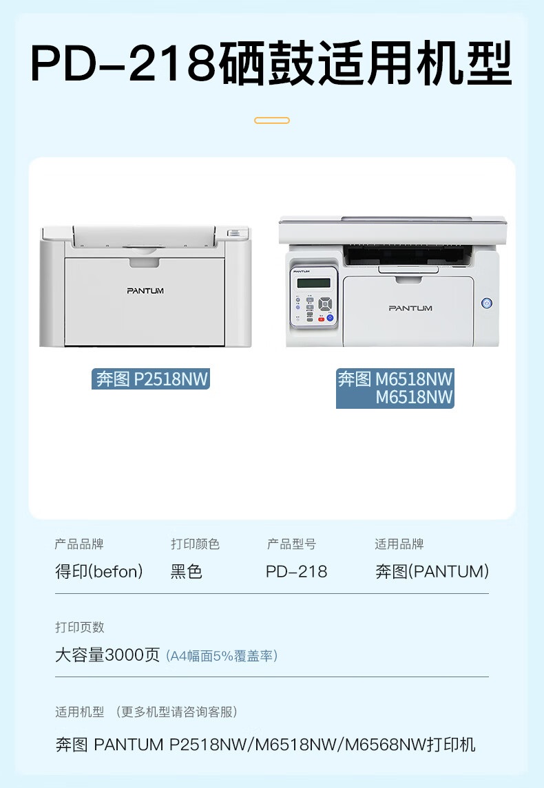得印PD-218硒鼓 大容量 适用奔图PANTUM P2518NW M6518NW单位:支 【6000页】PD-218超大容量硒鼓