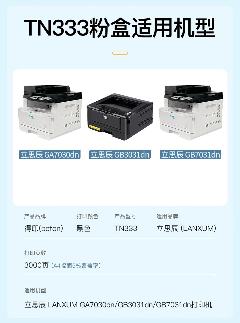 得印 TN-333 黑色粉盒 适用立思辰GA7030dn GB3031dn GB7031dn单位:支 【3000页】TN-333粉盒