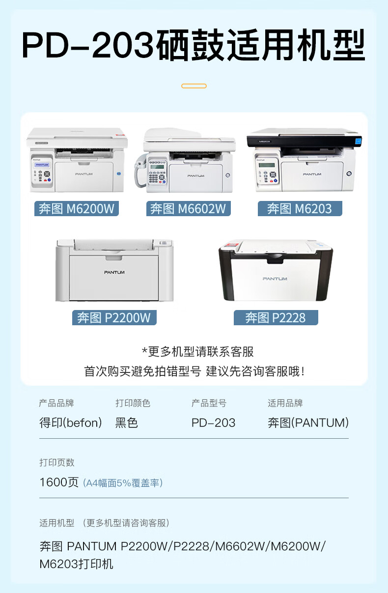得印PD-203T硒鼓 适用奔图M6200W硒鼓 P2200W墨盒 P2228 M6203 M6200W M6602W打印机墨粉盒 碳粉盒 【标准容量】PD-203硒鼓-1600页
