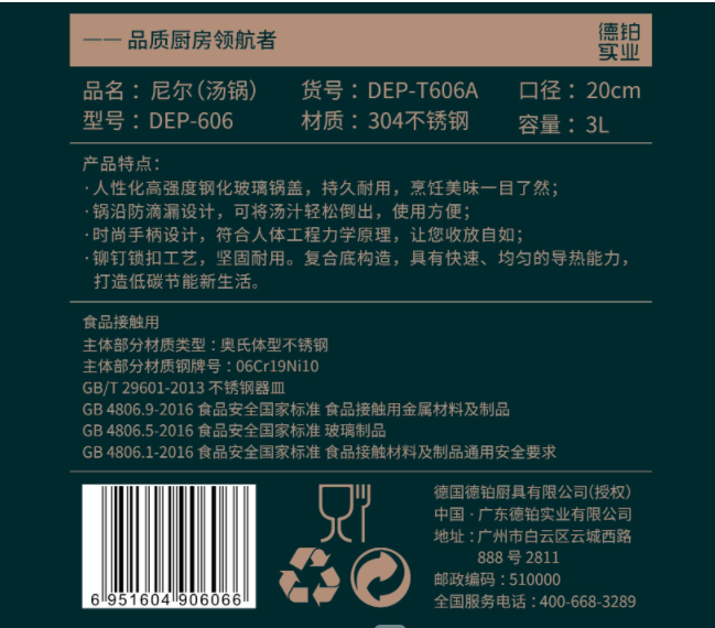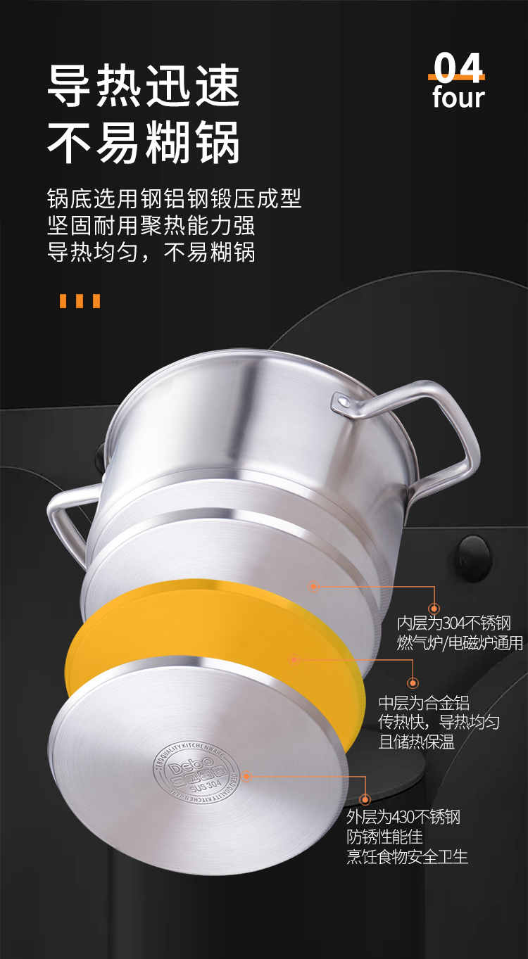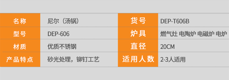 Debo(德铂)尼尔汤锅 20cm DEP-606 (单位:个) 不锈钢色