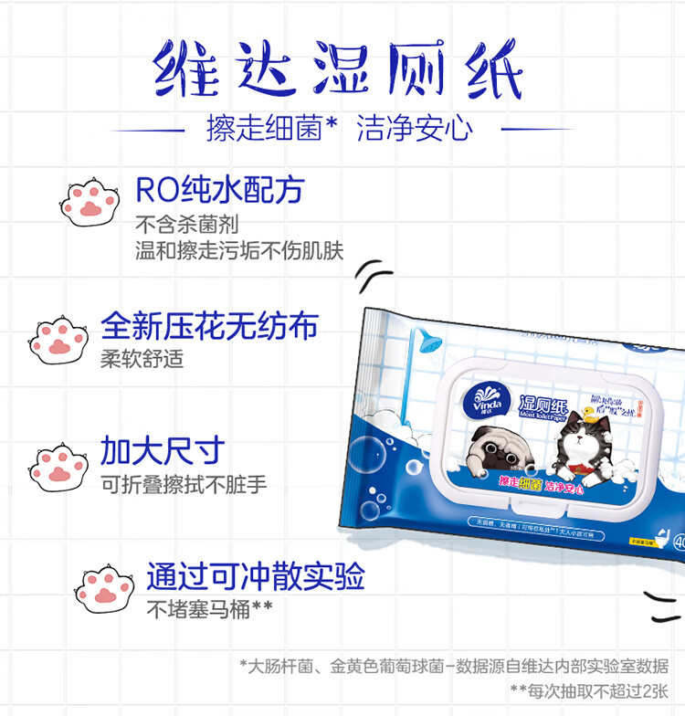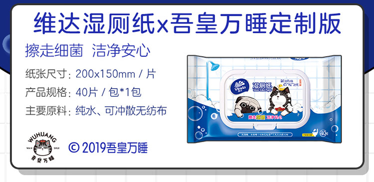 维达 VW3410-80P 40片装2包 吾皇系列卫生湿巾 白色(单位:组)