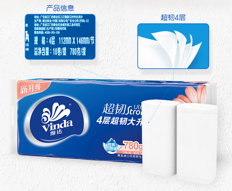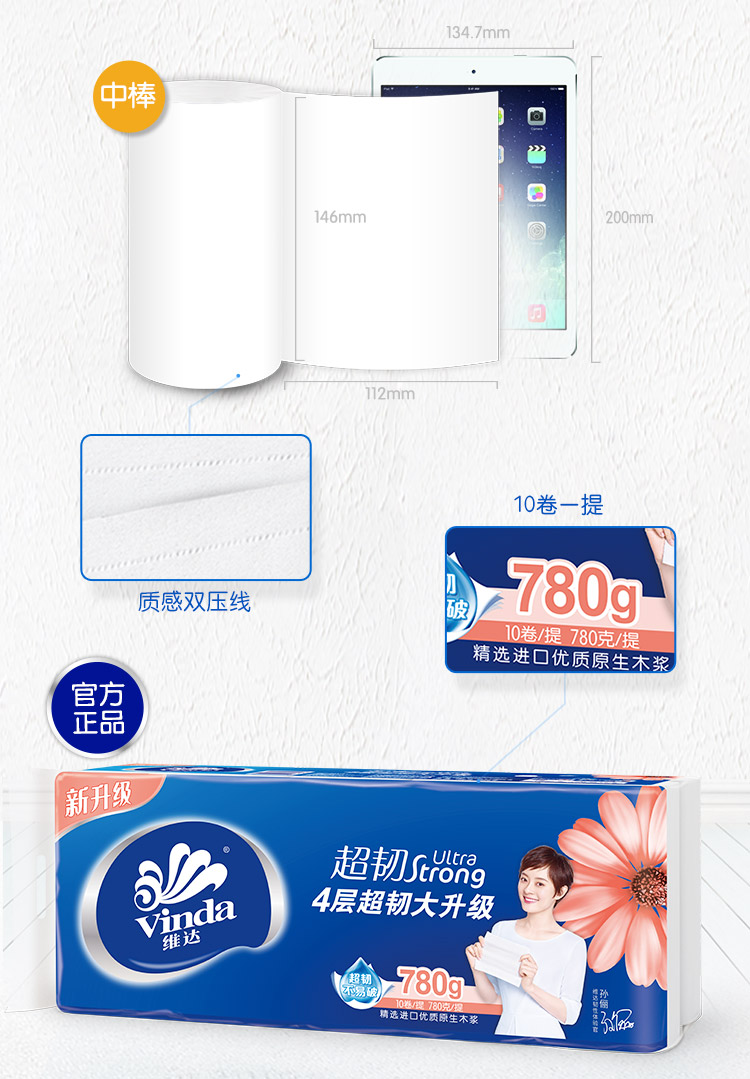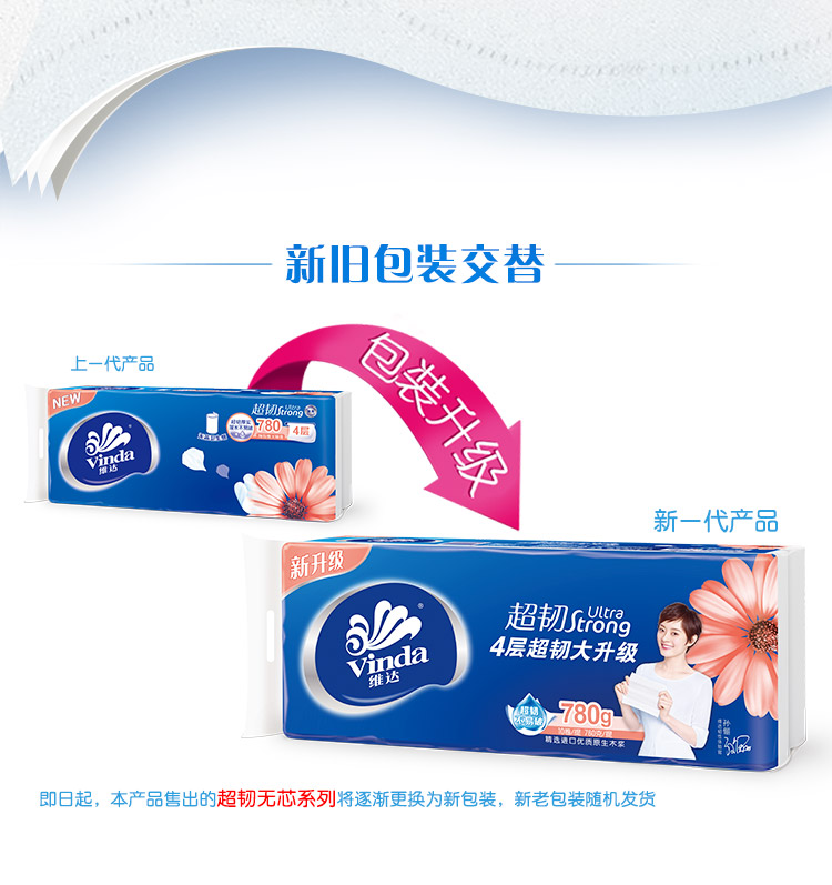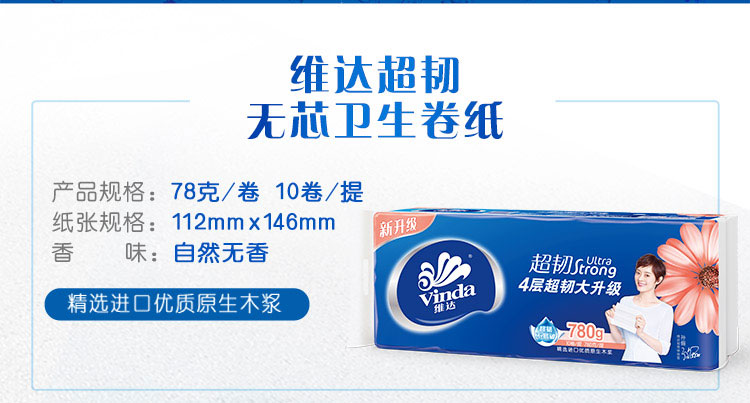维达超韧无芯卷纸4层78克20卷 V4143-20E(单位:提) 白色