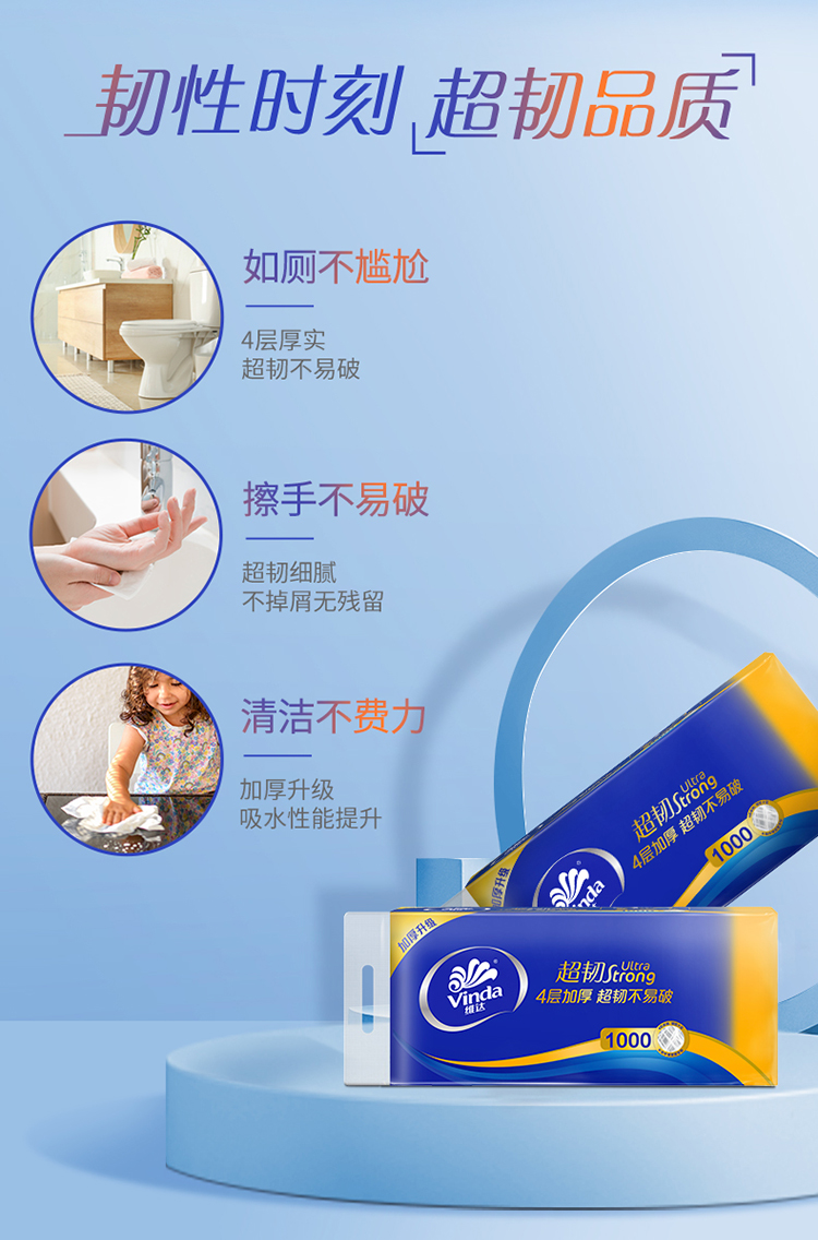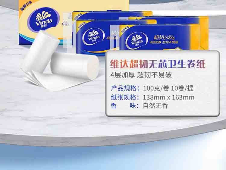 维达(Vinda) 超韧无芯卷纸4层100克10卷 V4600-10E(单位:提) 白色