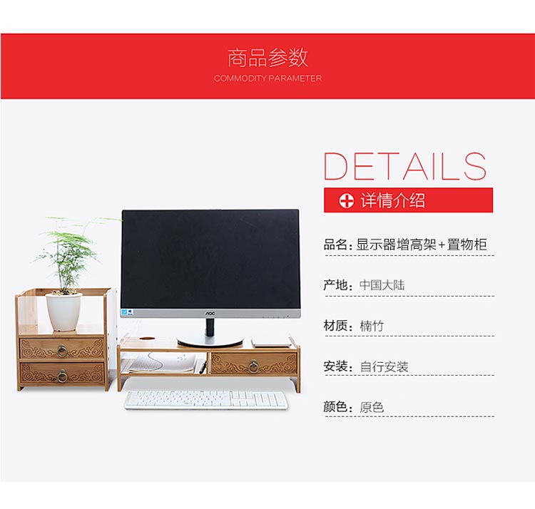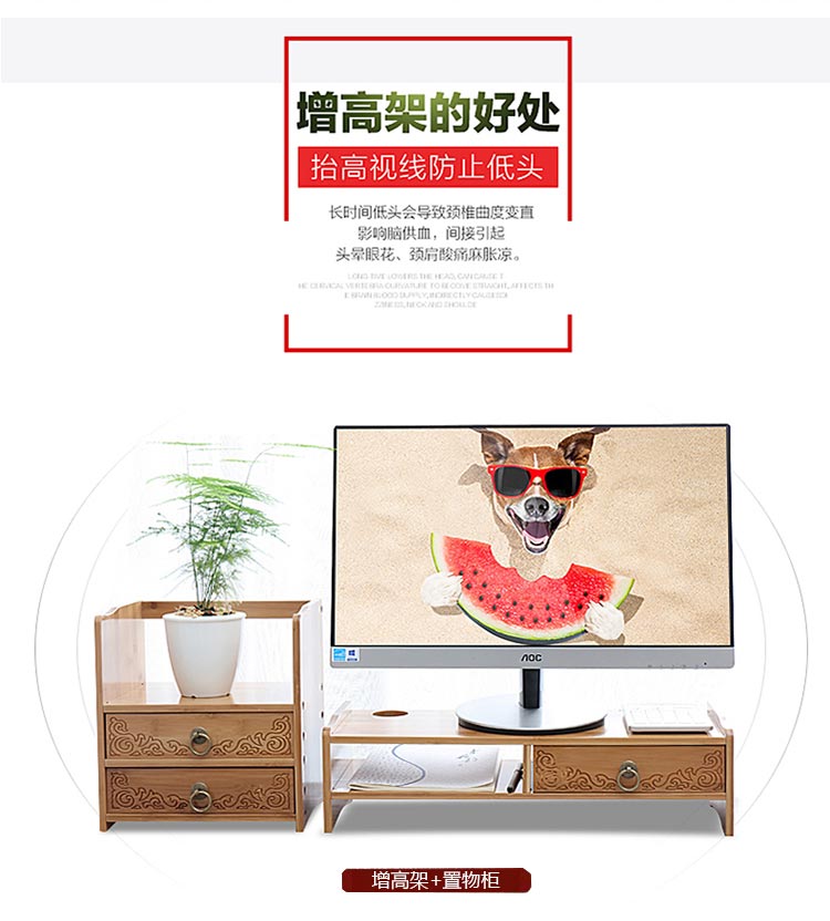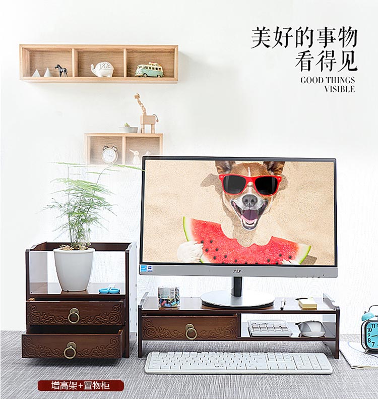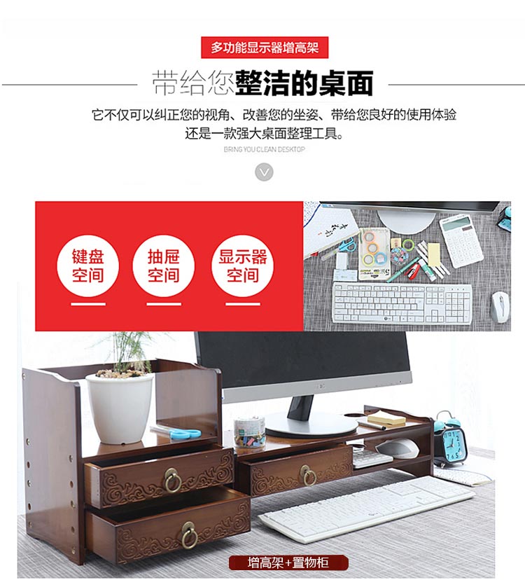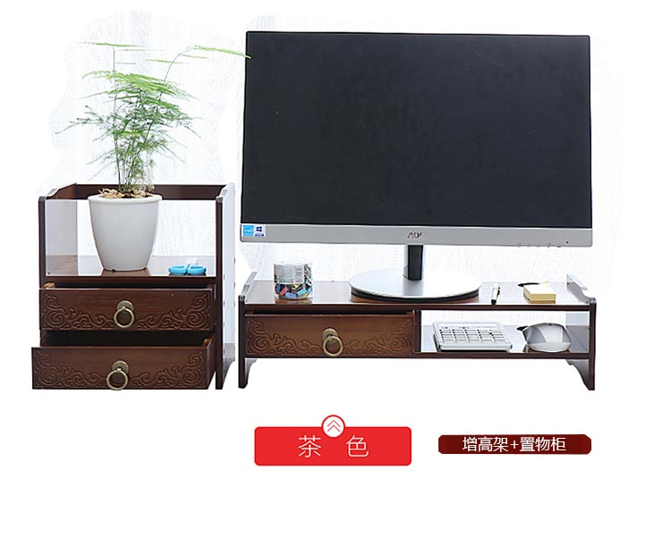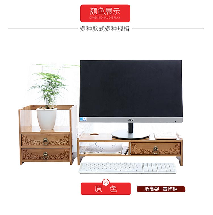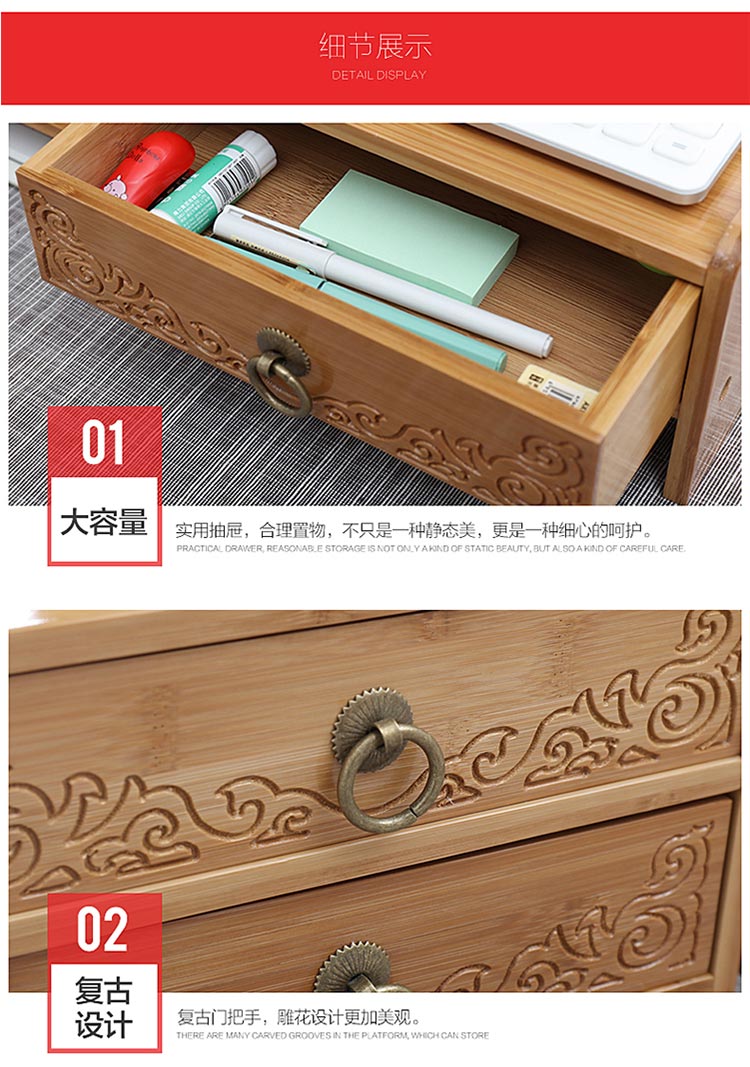 倍方 桌面收纳架 仿古云纹 实木竹制 多功能置物架 可搭配显示器增高架 办公桌面收纳架 (单位:个) 多功能置物架