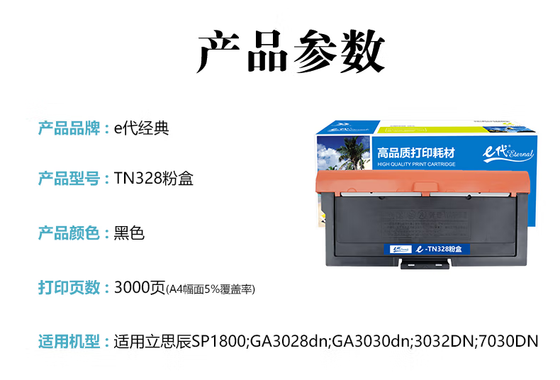 e代经典 TN328粉盒 适用立思辰TN328粉盒SP1800 GA3028dn墨盒7030dn/3032dn硒鼓打印机感光鼓 黑色