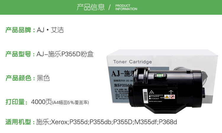 艾洁(AJ) P355D 打印量4000页 适用施乐/Xerox/P355d/P355db/P355D/M355df/P368d 粉盒 (计价单位:只) 黑色
