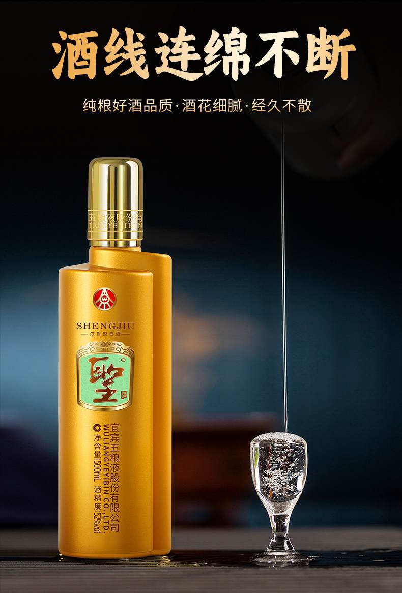 五粮液 股份 圣酒醇品金樽 浓香型52度 白酒 500ml*4瓶/盒 金色(单位:盒)