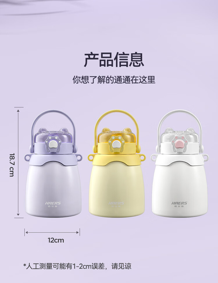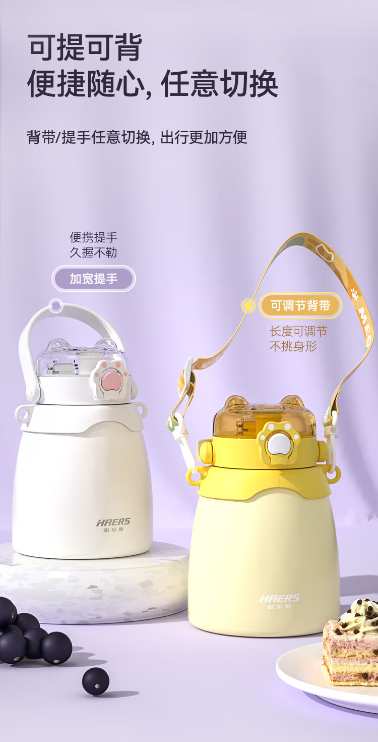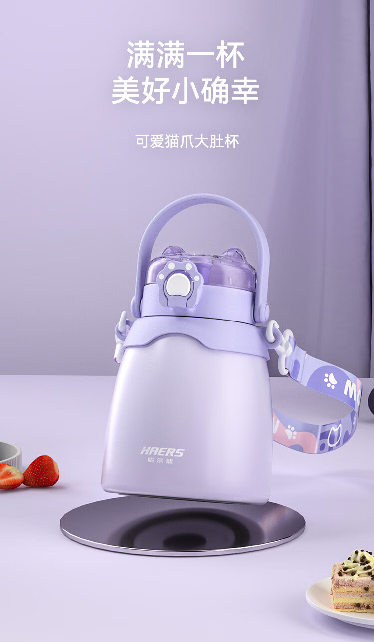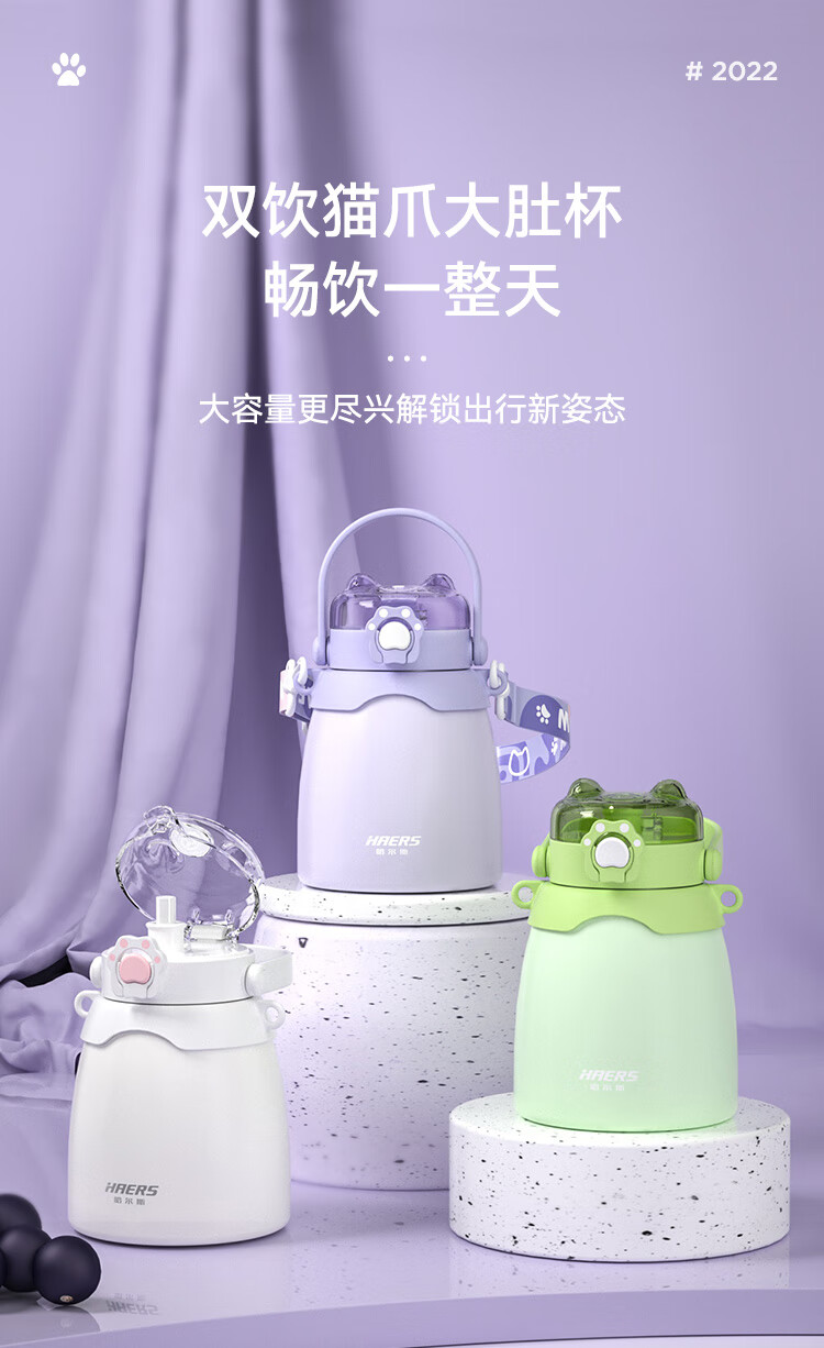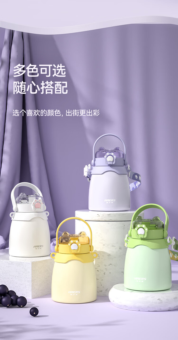 哈尔斯(HAERS)女学生吸管水便携316不锈钢网红大肚杯壶1000ML HQ-1000-7(单位:个) 绿色