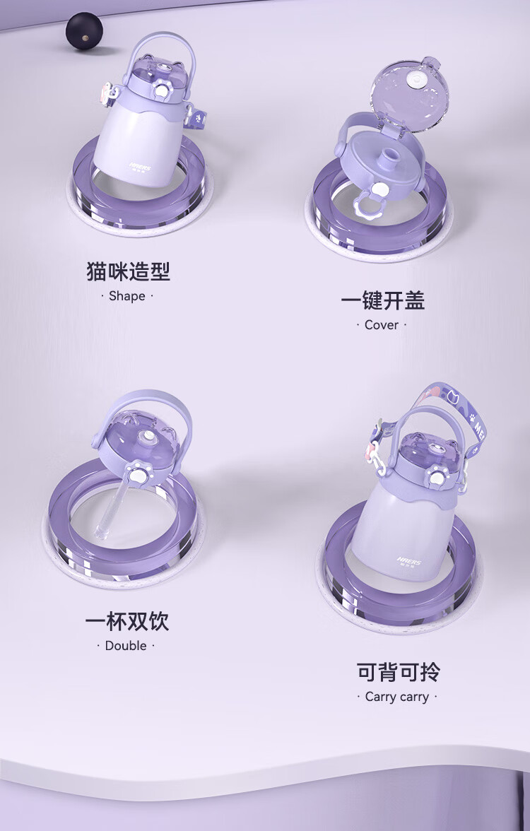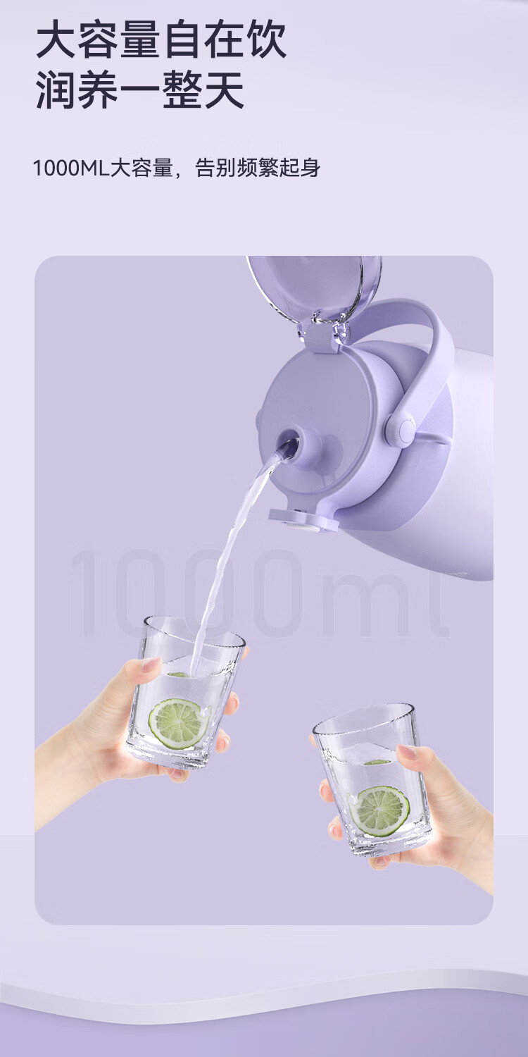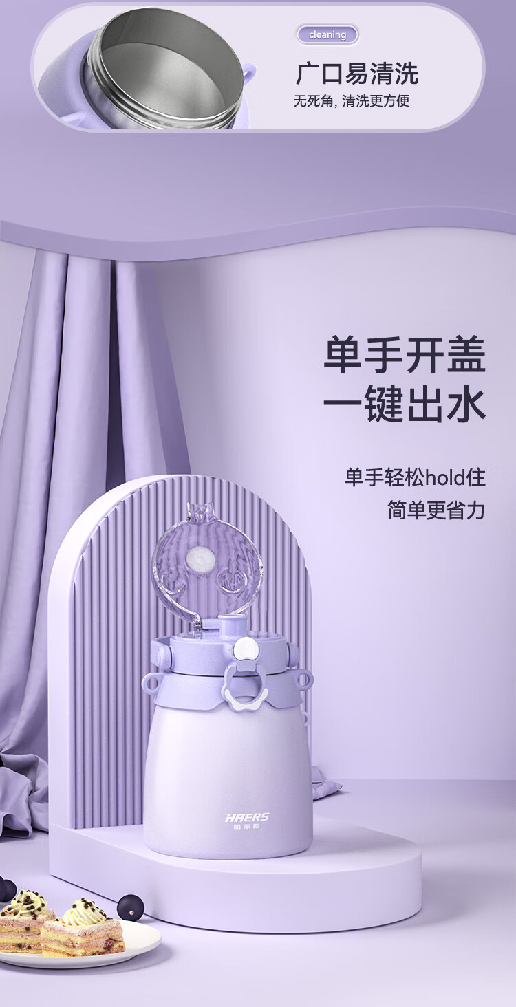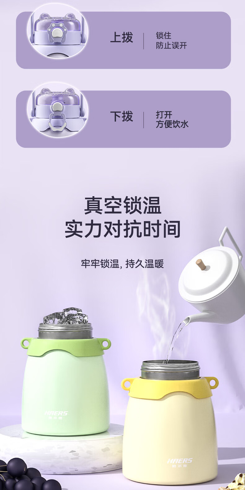 哈尔斯(HAERS)女学生吸管水便携316不锈钢网红大肚杯壶1000ML HQ-1000-7(单位:个) 绿色