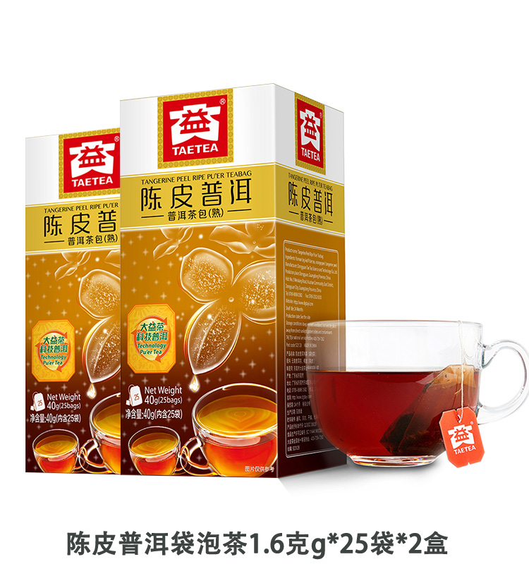 大益陈皮普洱熟茶(袋泡茶)40g*2盒 无色