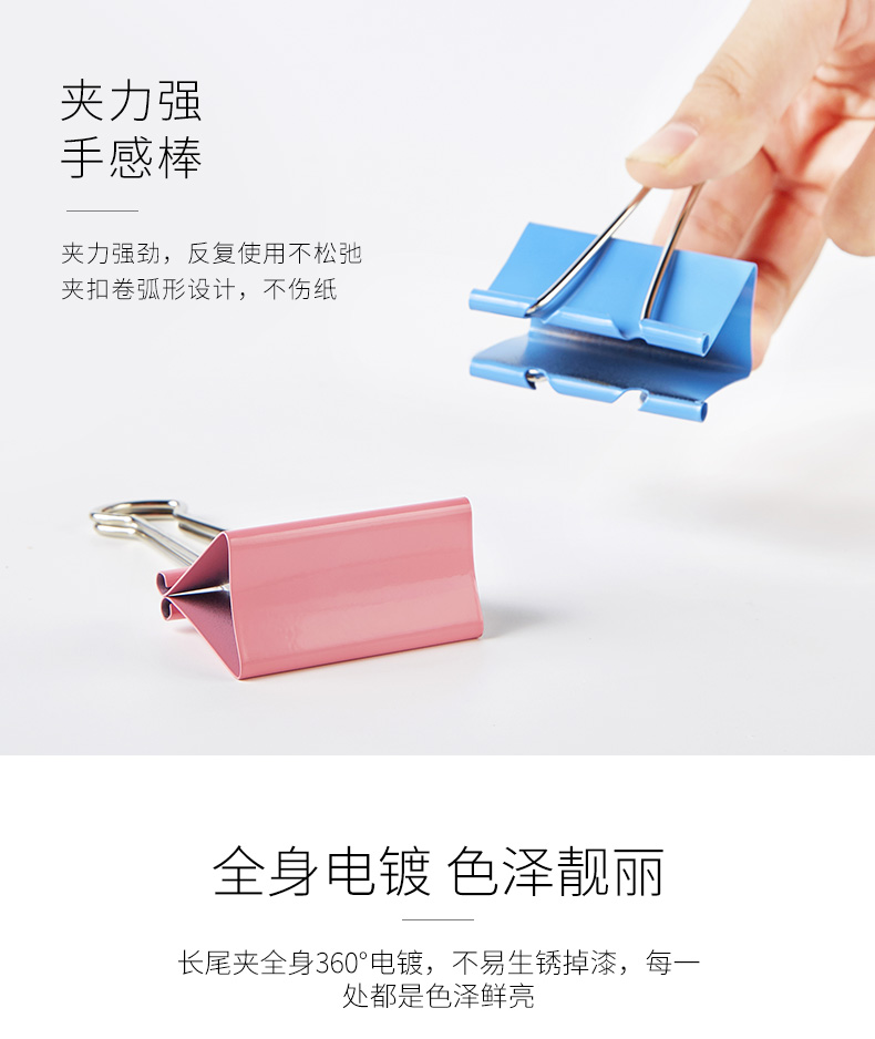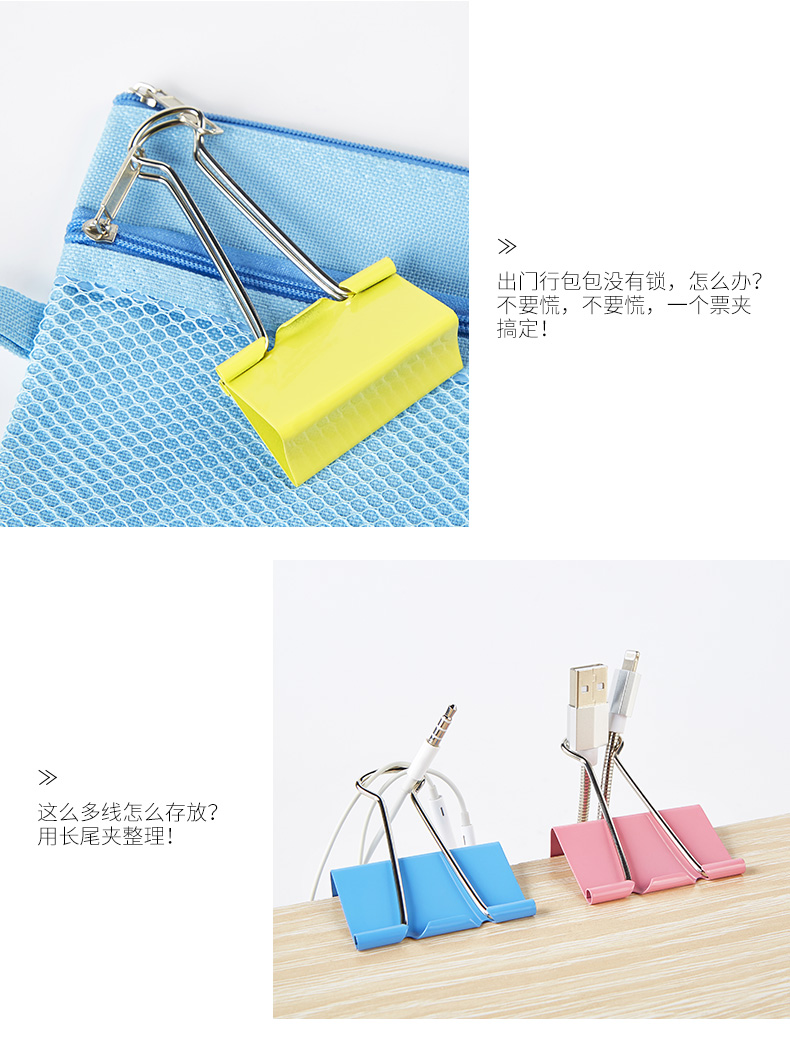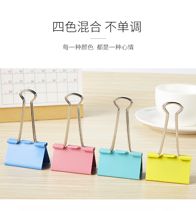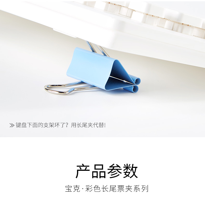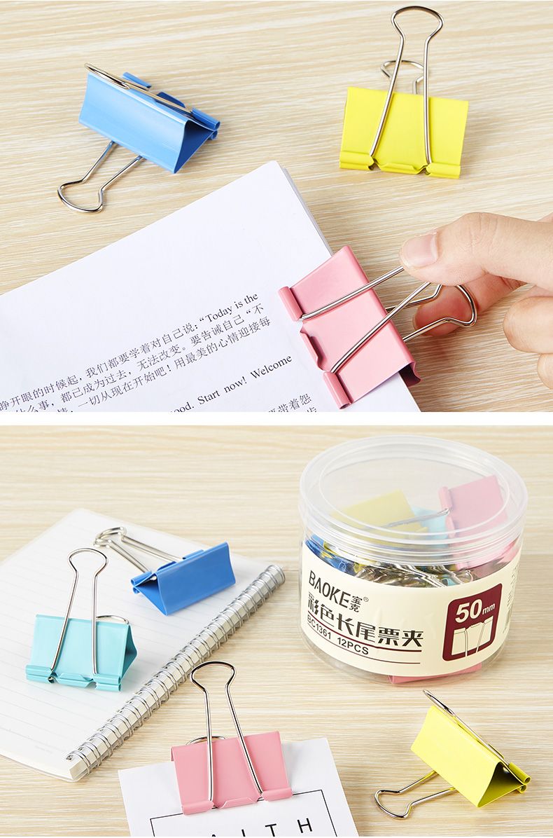 宝克(BAOKE)BC1361 50mm大号彩色长尾票夹 大号金属燕尾夹票据夹子 2筒/组 彩色