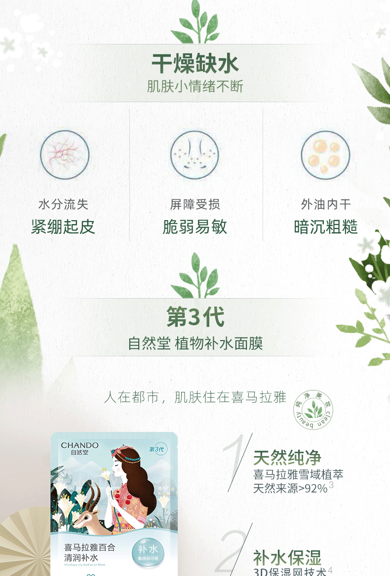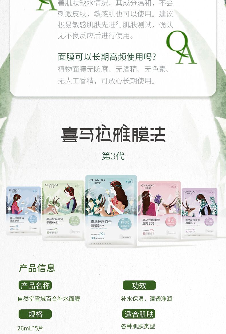 自然堂(CHANDO)百合面膜+龙胆面膜+紫草面膜 5pcs*3盒共15片装(单位:套) 宝石蓝