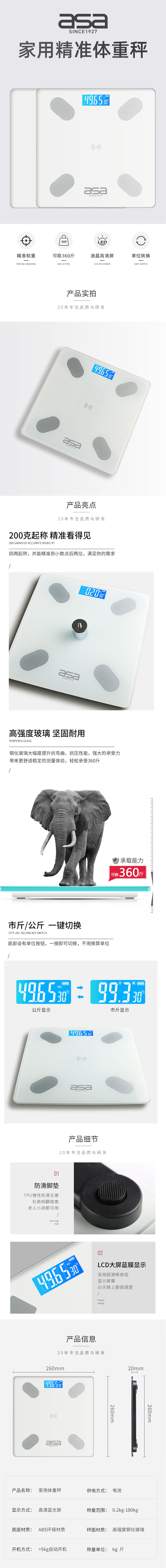 北欧阿萨(asa)体脂秤AC-001(单位:个) 白色