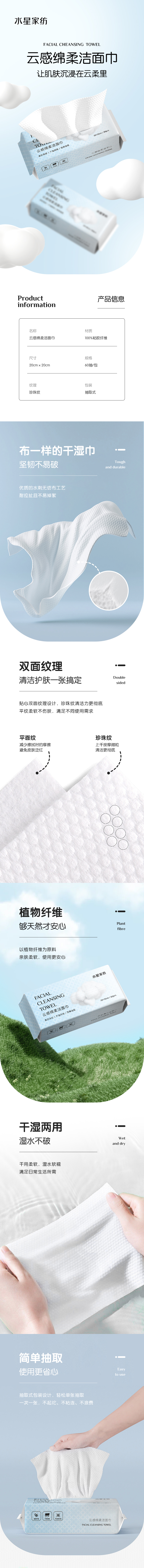 水星家纺 云感绵柔洁面巾20cm×20cm 60抽\每包 蓝色