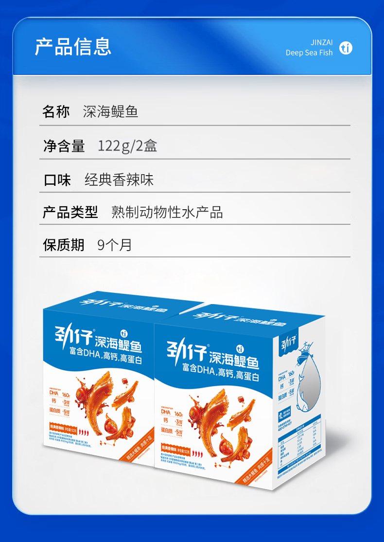 劲仔深海鳀鱼休闲零食经典香辣味(单位:组) 深蓝色 经典香辣味122g/盒*2盒