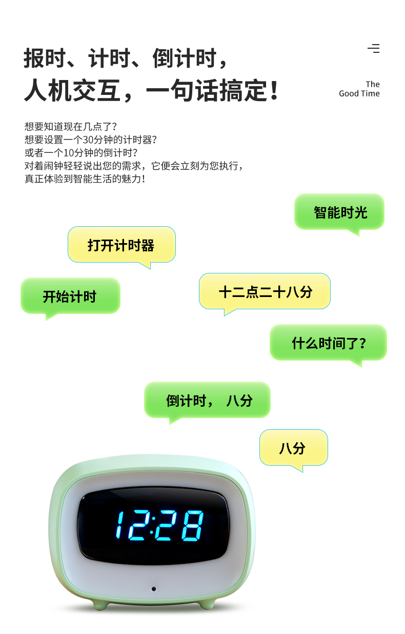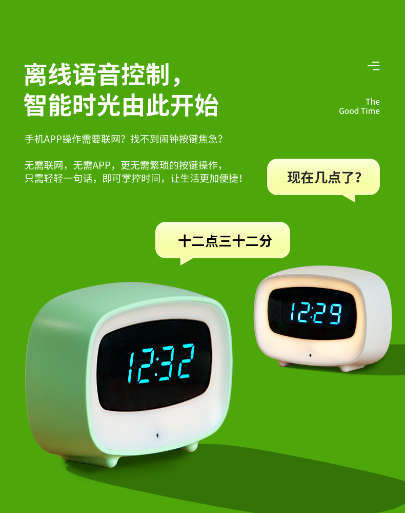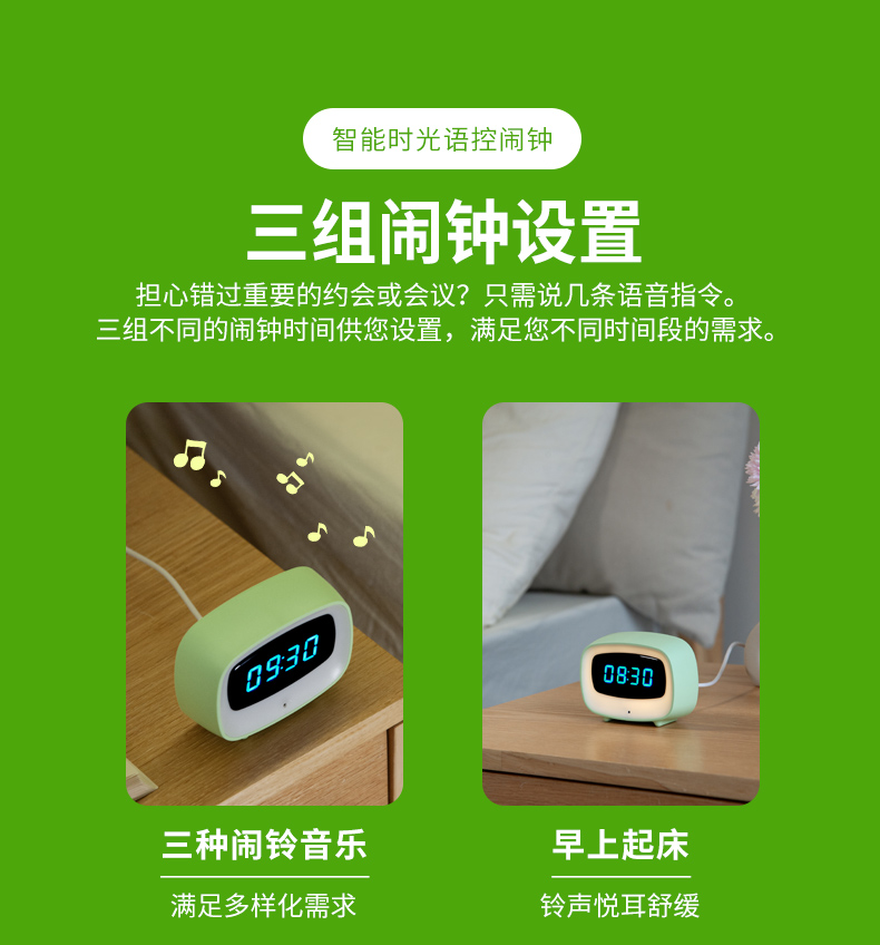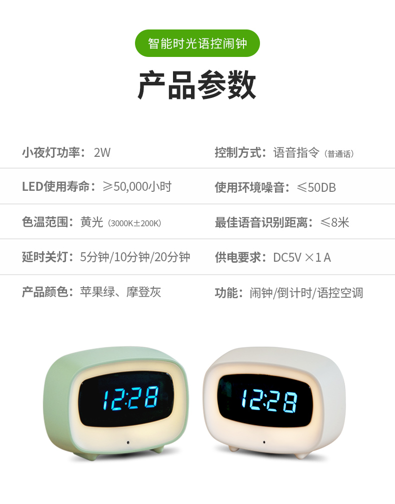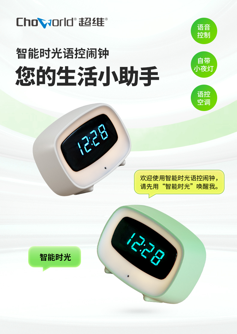 超维 CW8630 120*106*42mm 智能时钟闹钟小夜灯 浅绿色(单位:台)