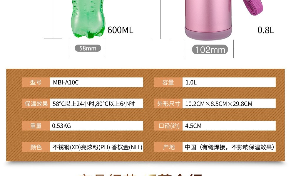 虎牌 MBI-A10C 1L 户外保温壶 金色(单位:个)