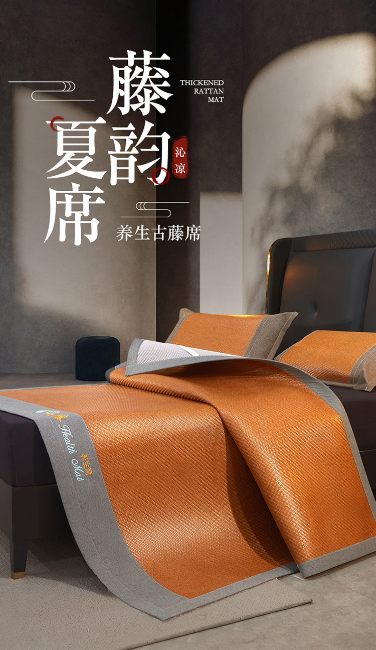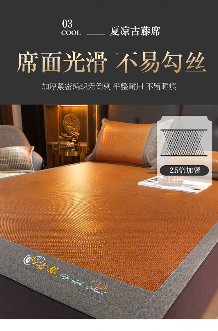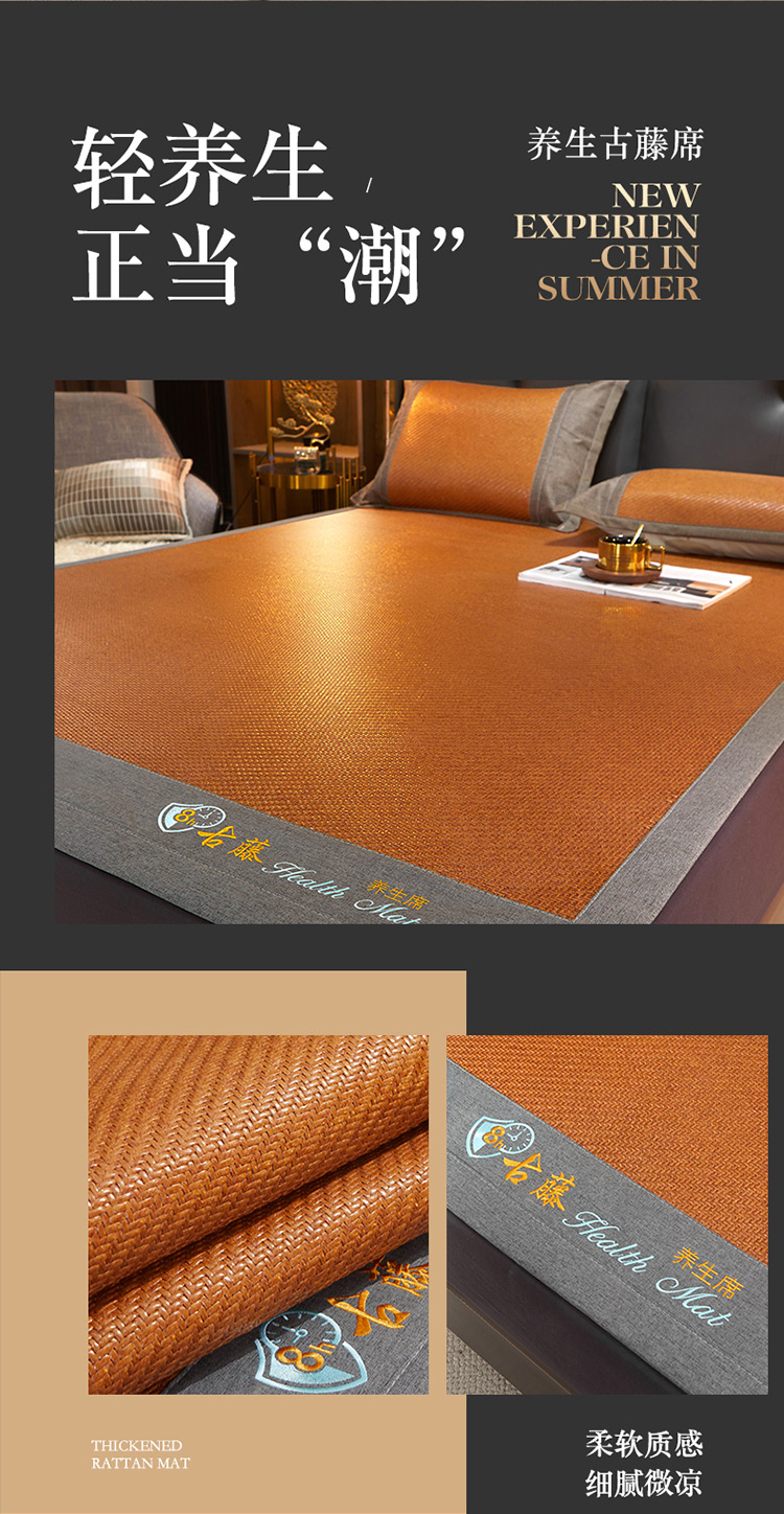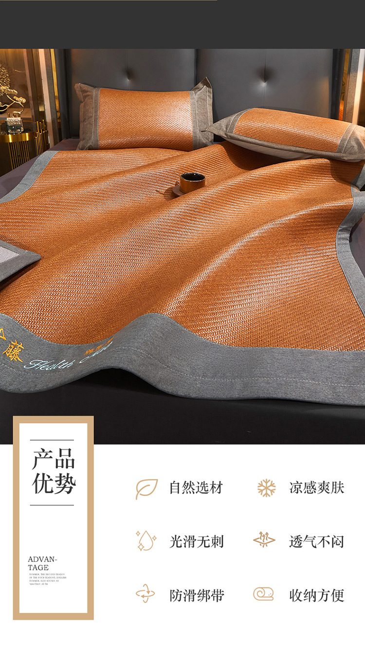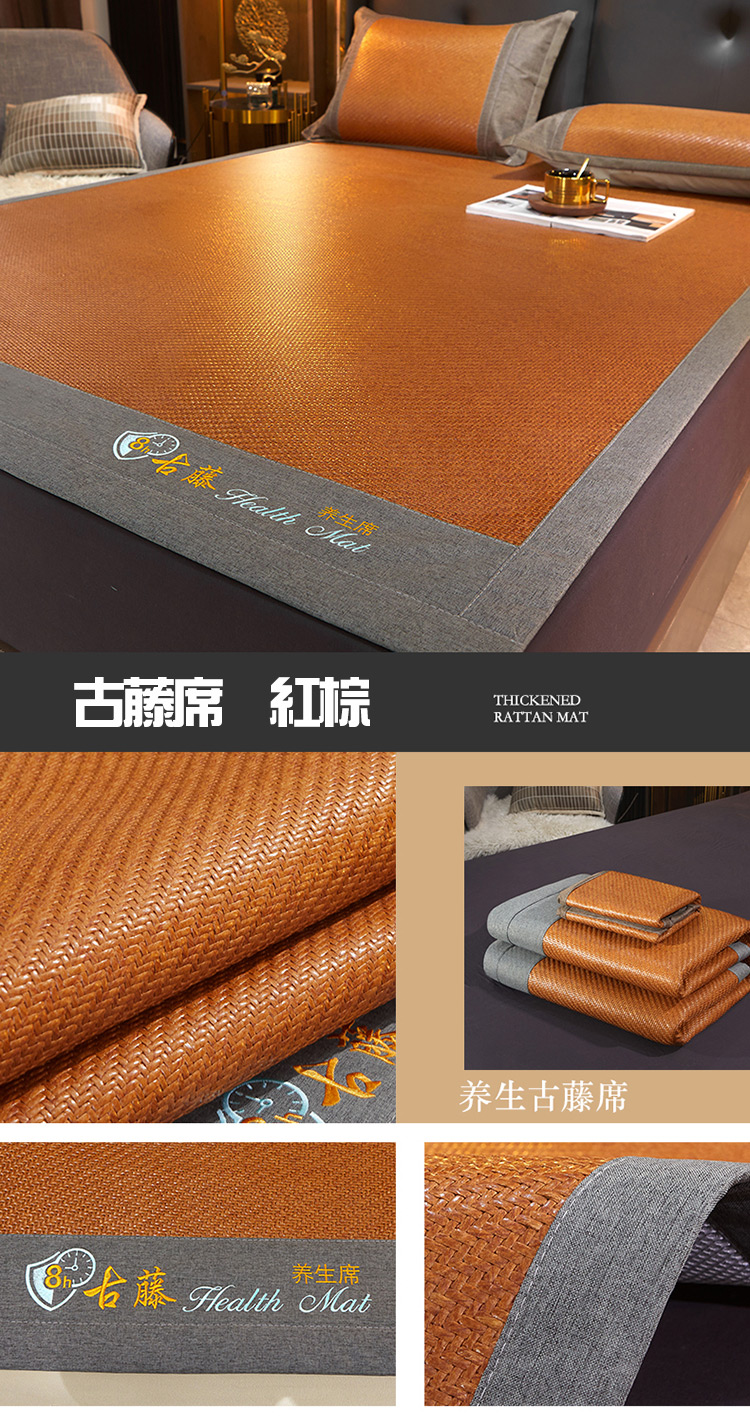 樵纪 凉席+枕套2只 三件套 绣花养生古藤席 1.8米床 棕色(单位:套)