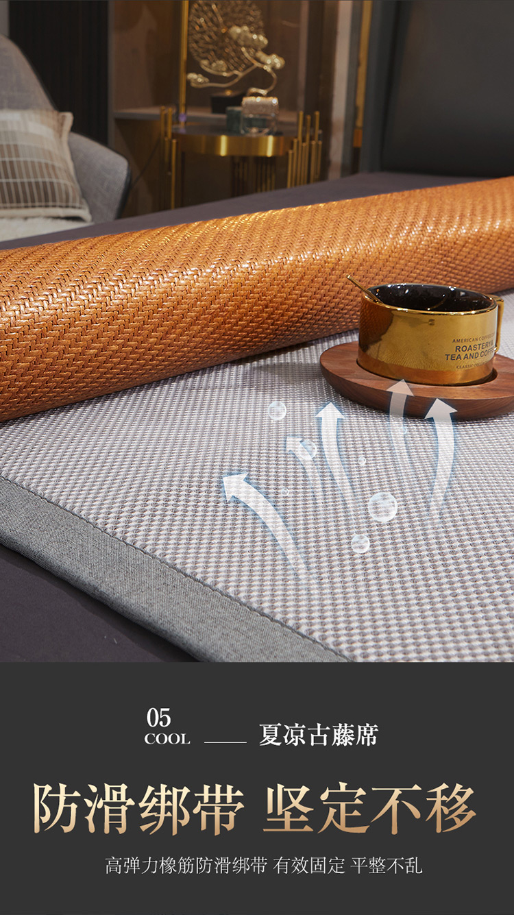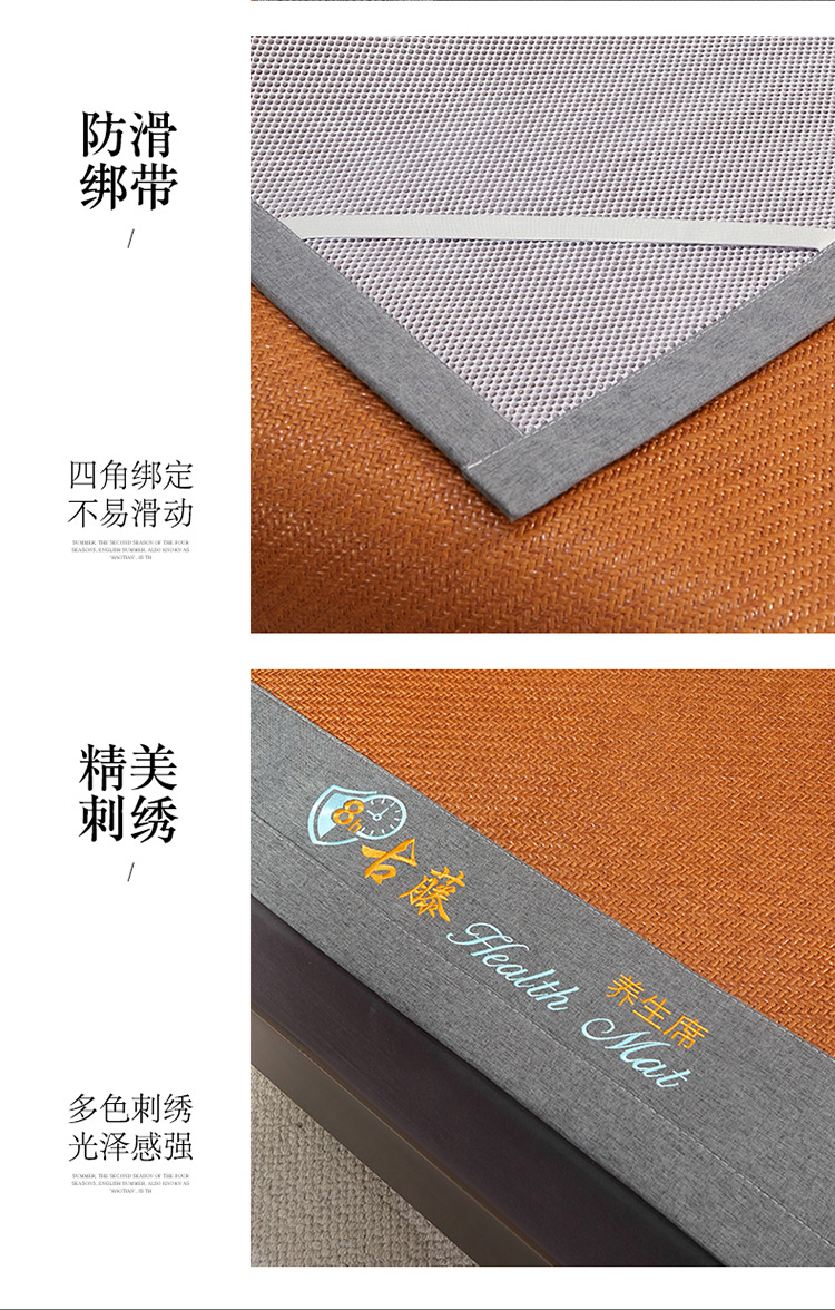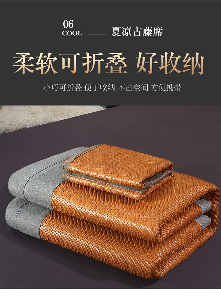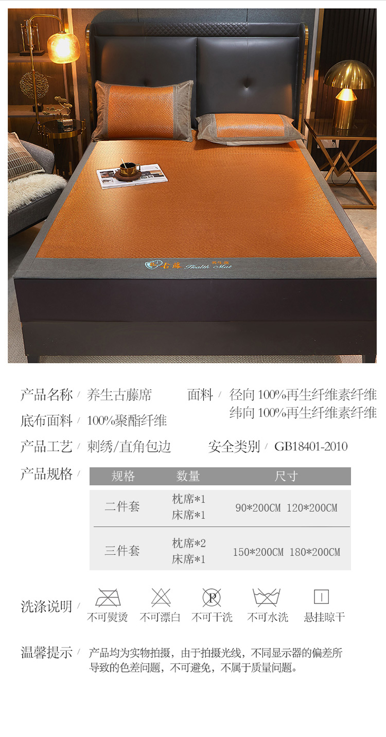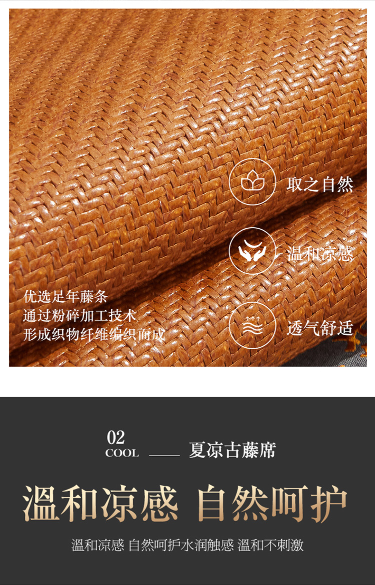 樵纪 凉席+枕套2只 三件套 绣花养生古藤席 1.8米床 棕色(单位:套)