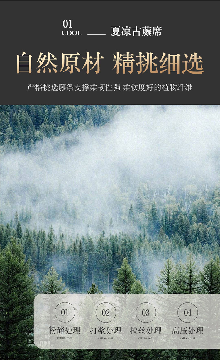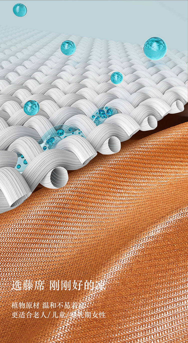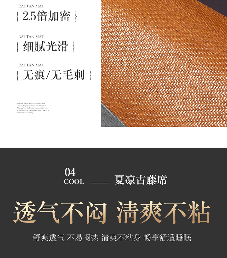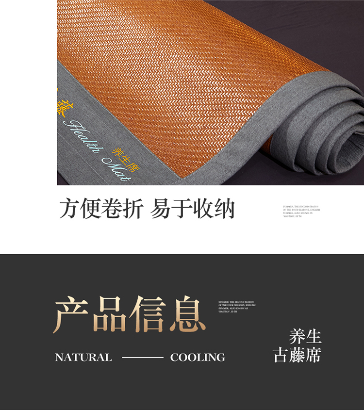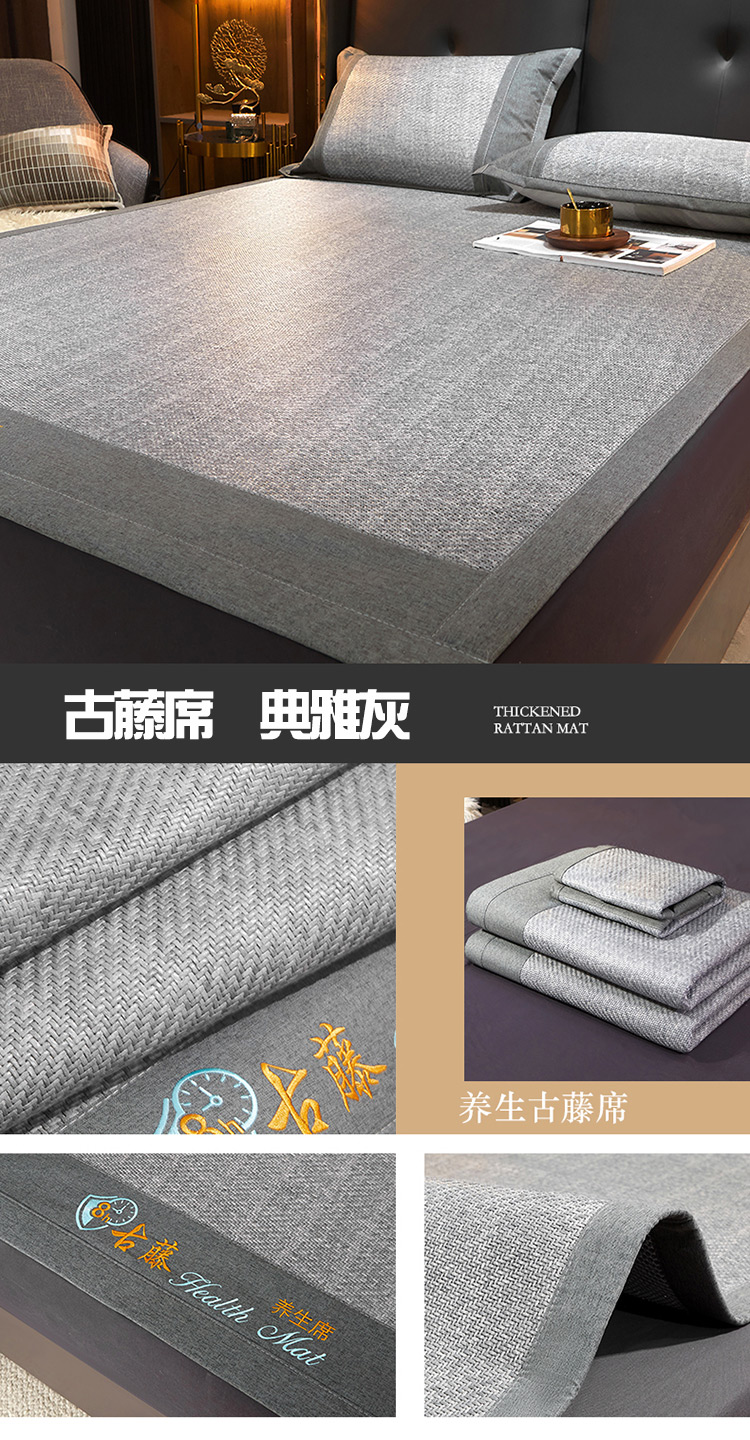 樵纪 凉席+枕套2只 三件套 绣花养生古藤席 1.8米床 棕色(单位:套)