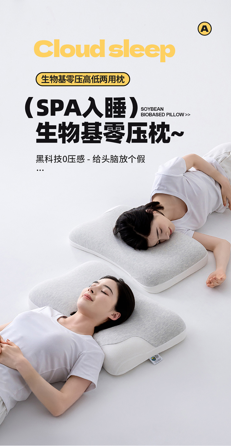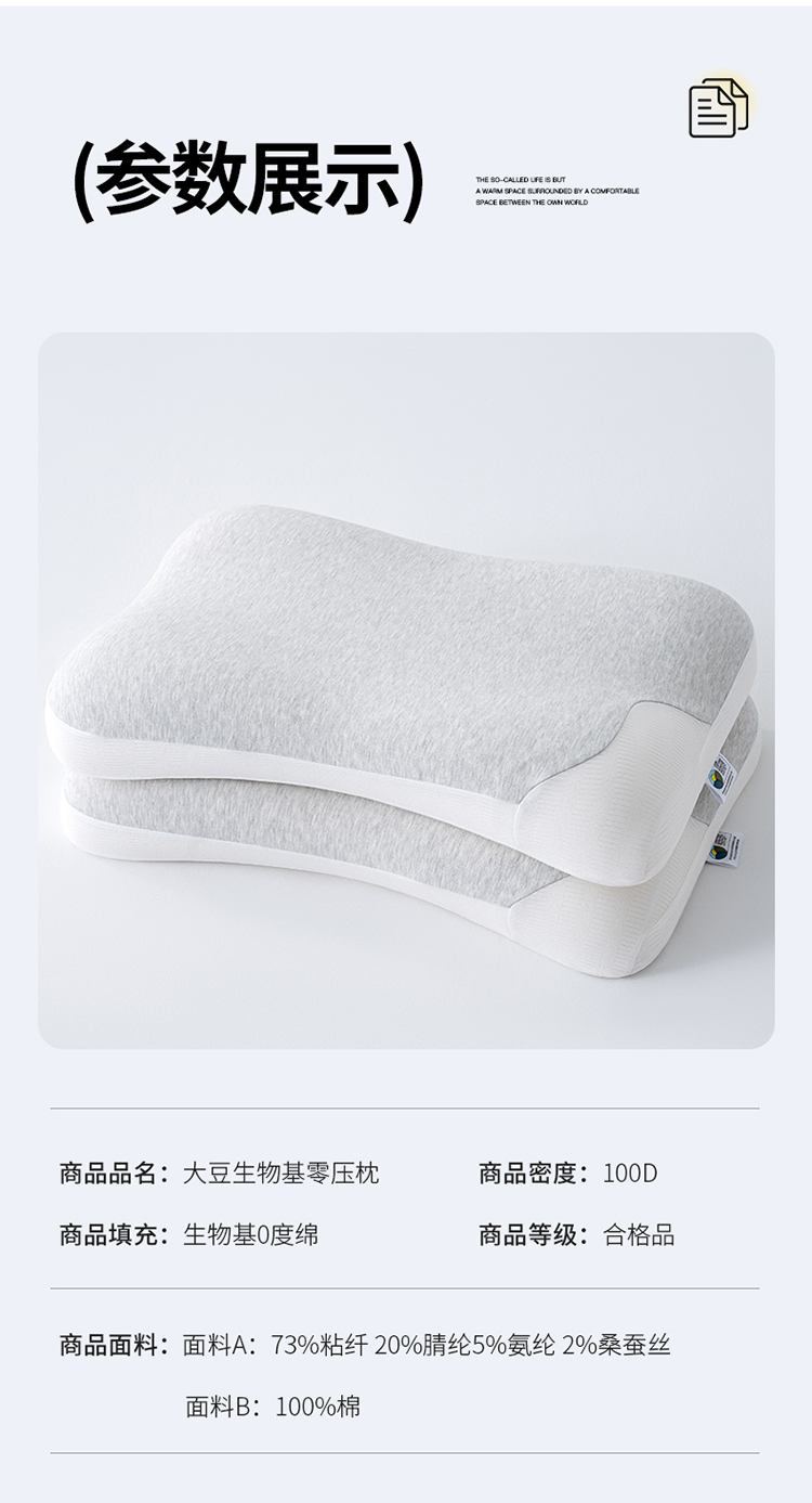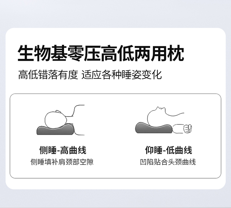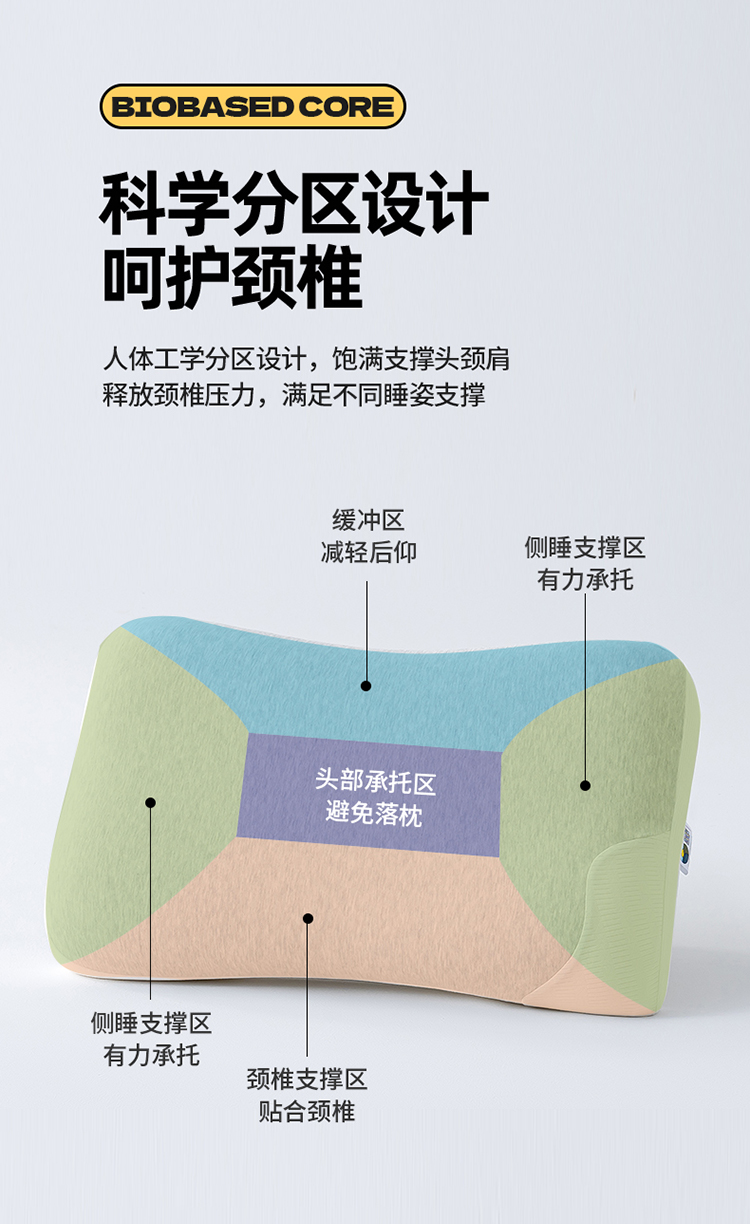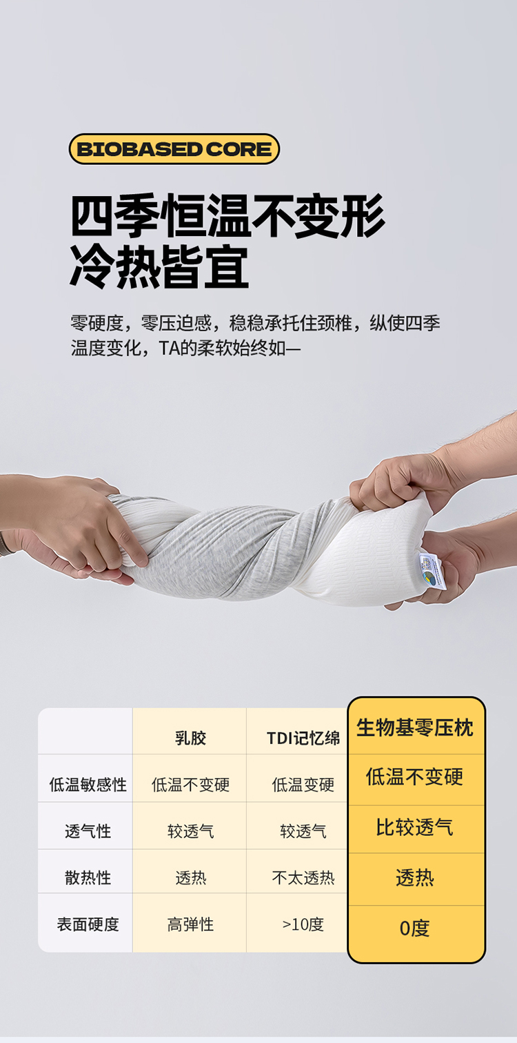 樵纪 大号 40x63x9-11cm 生物基0度绵零压枕头 灰色(单位:只)