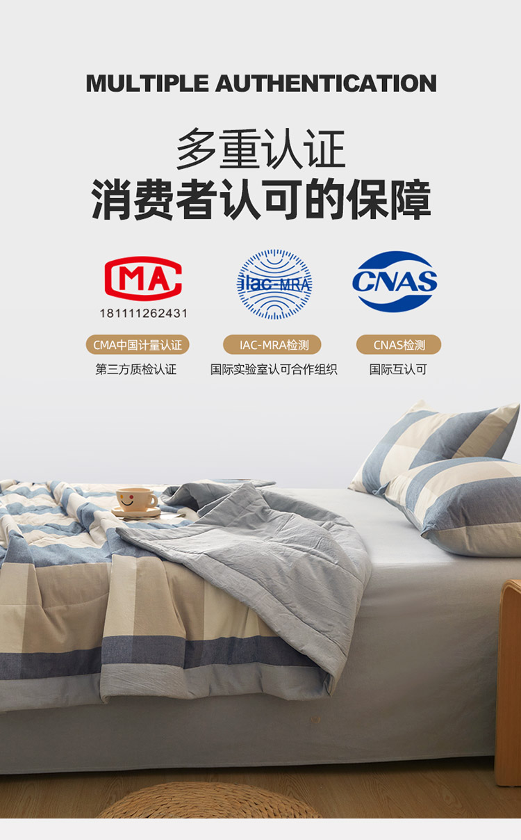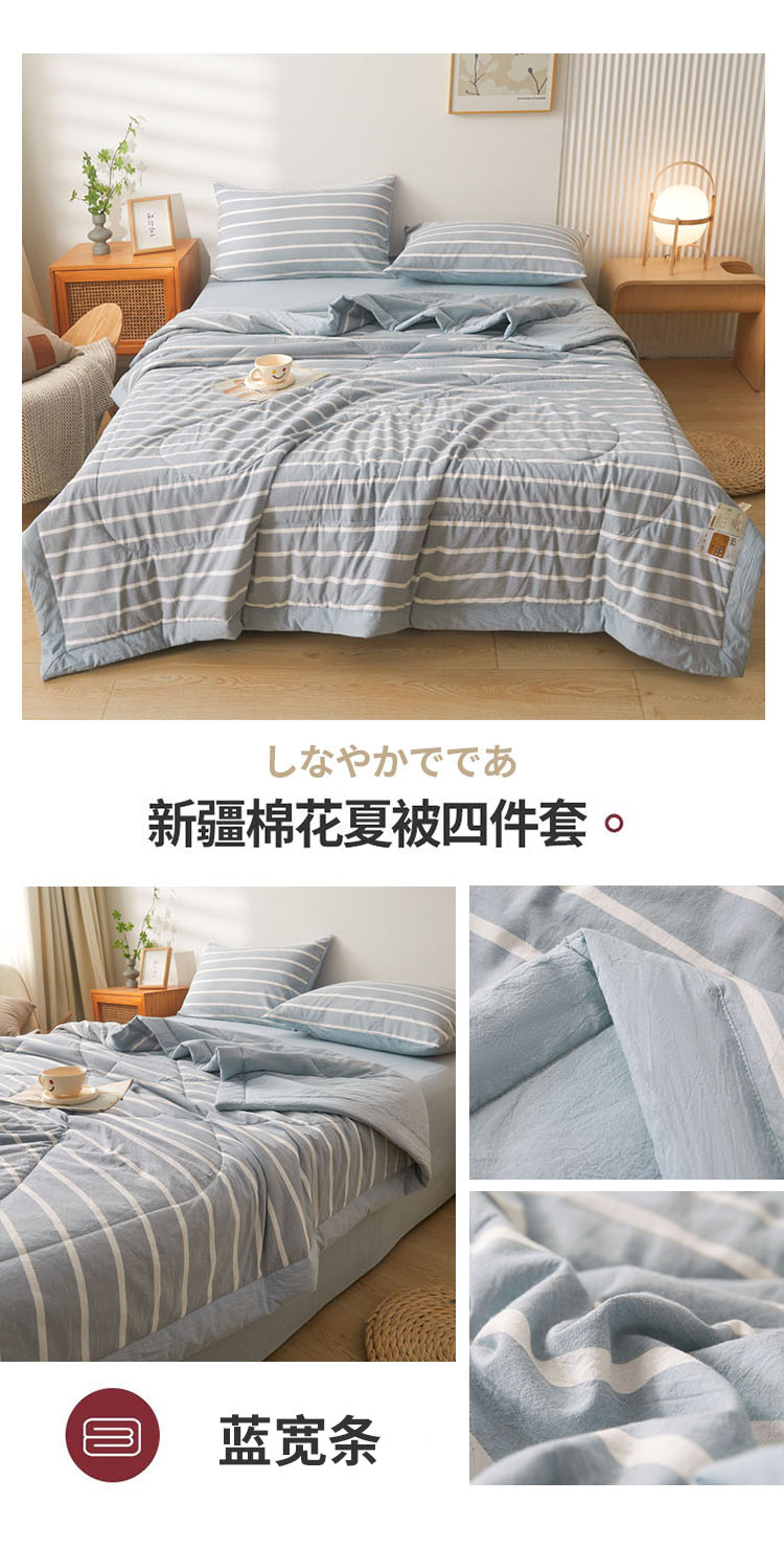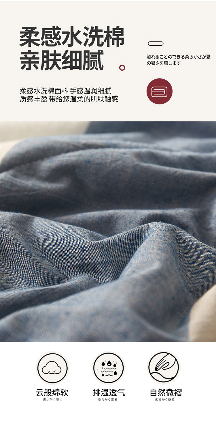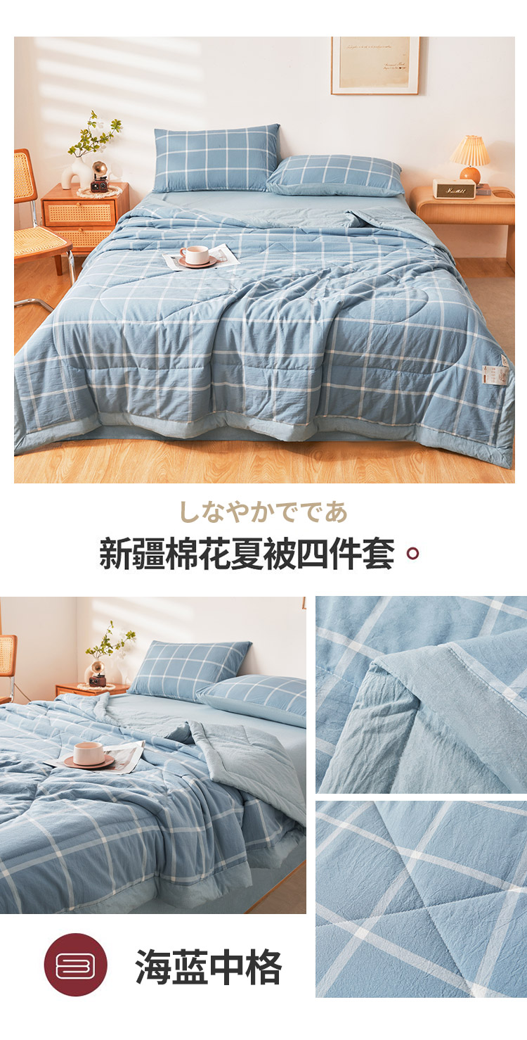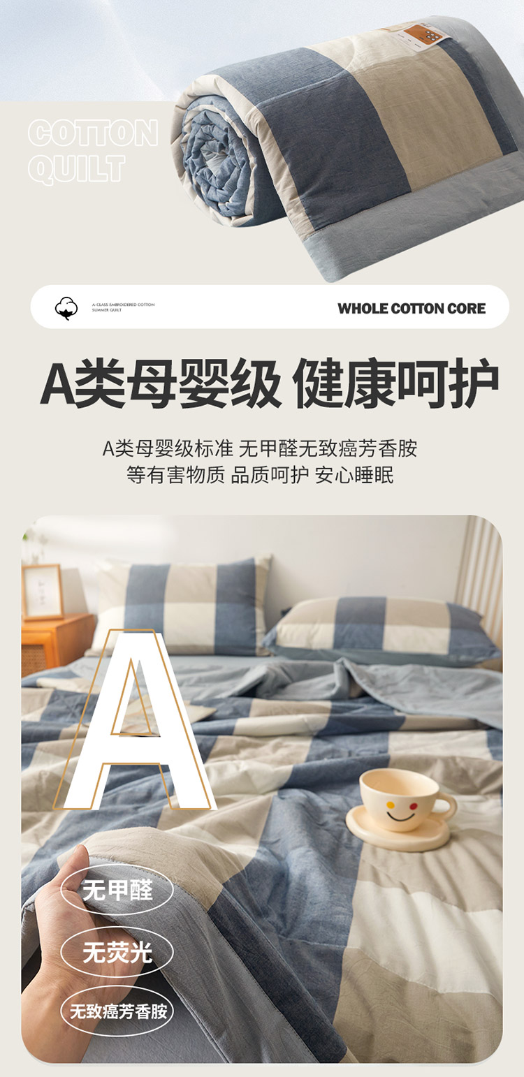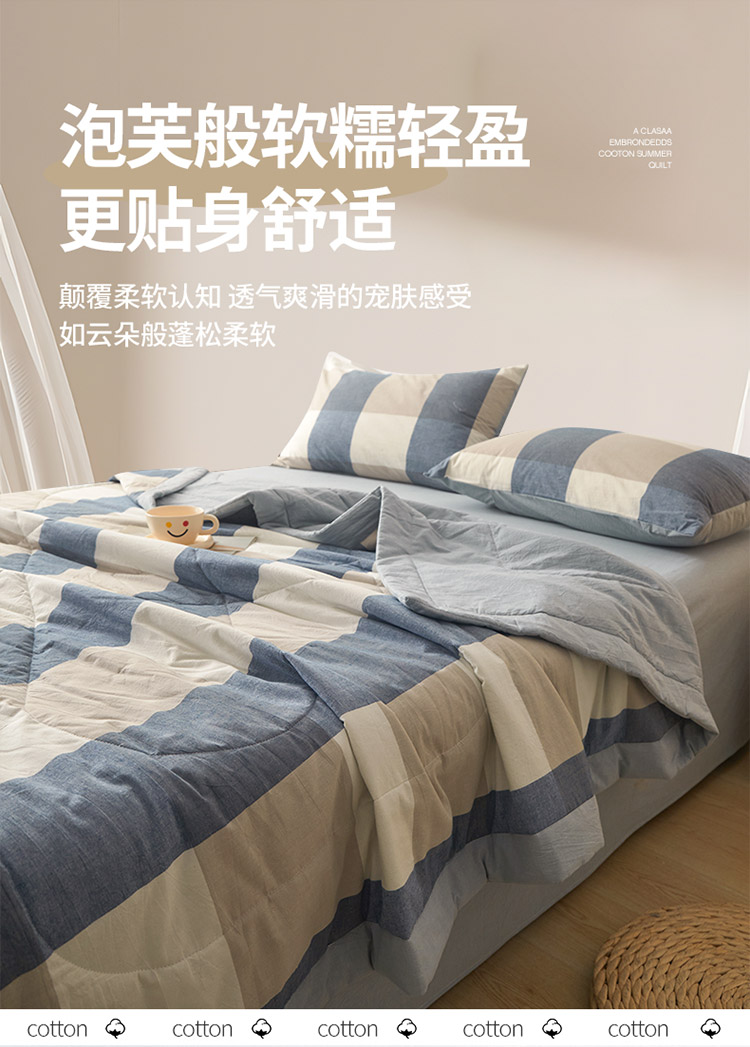 樵纪 简兮 双人被 无印风水洗棉棉花夏被 180x220cm 蓝色(单位:床)