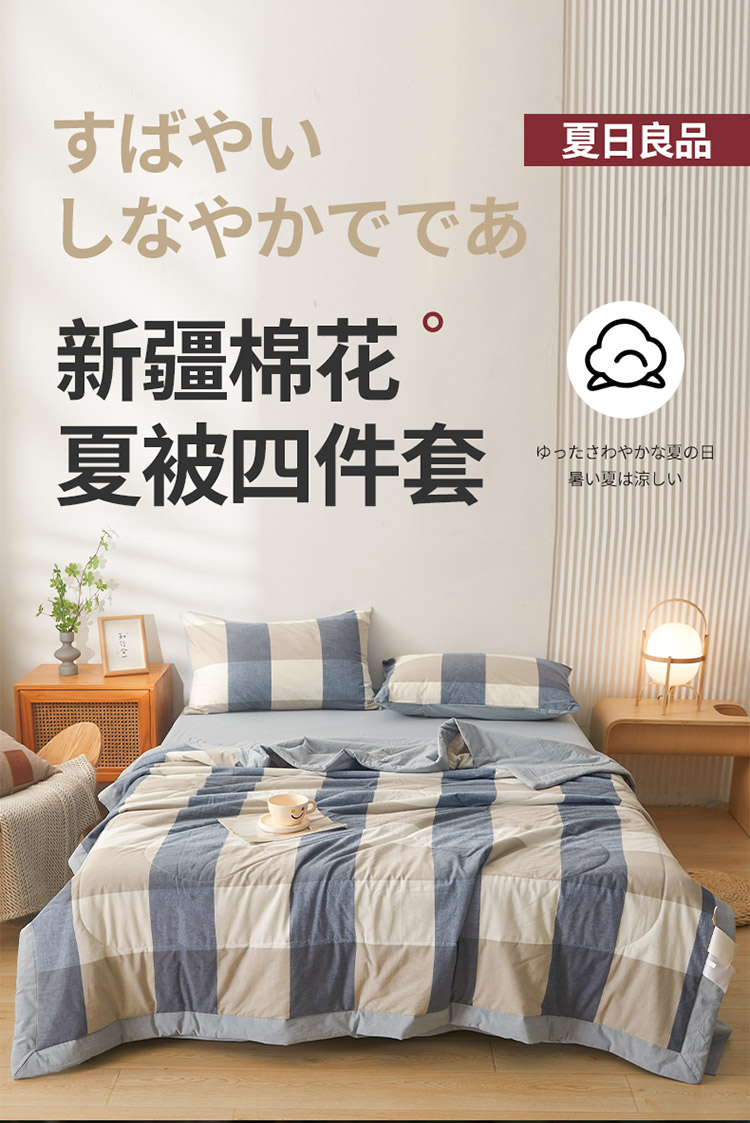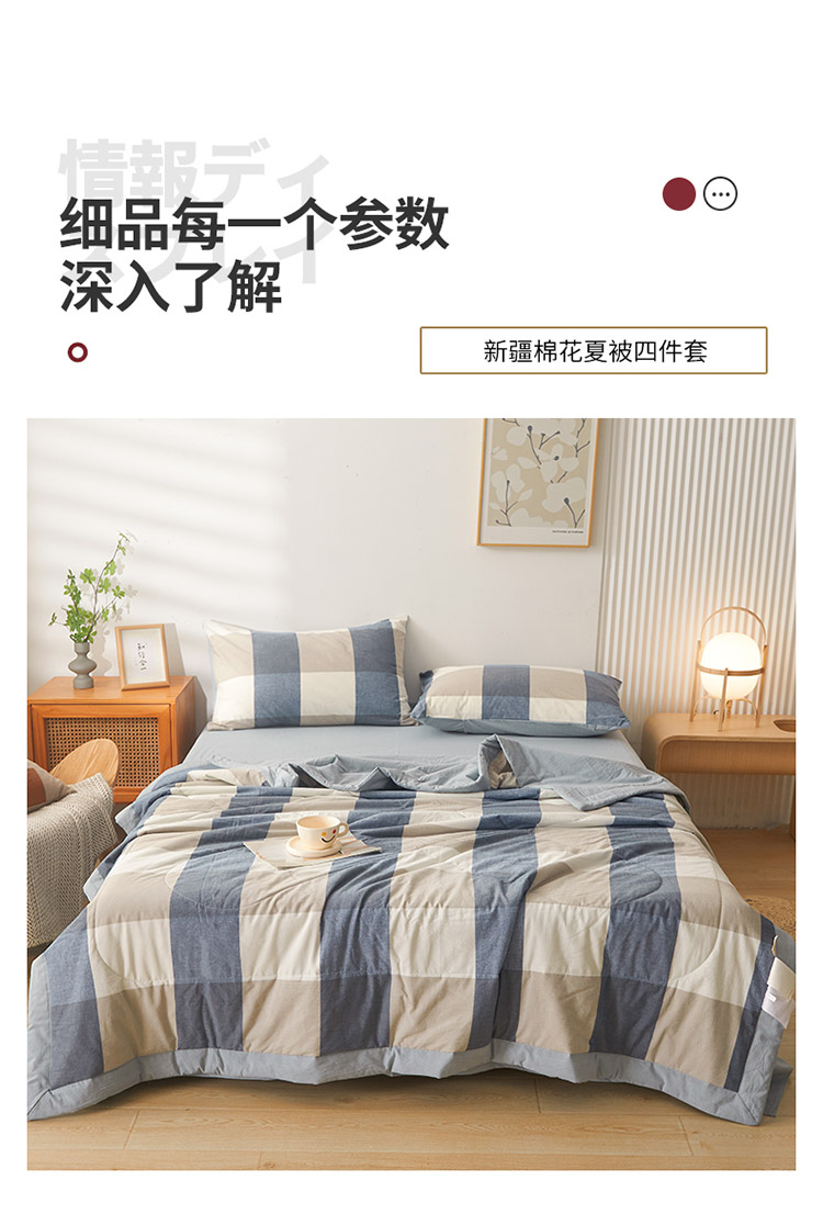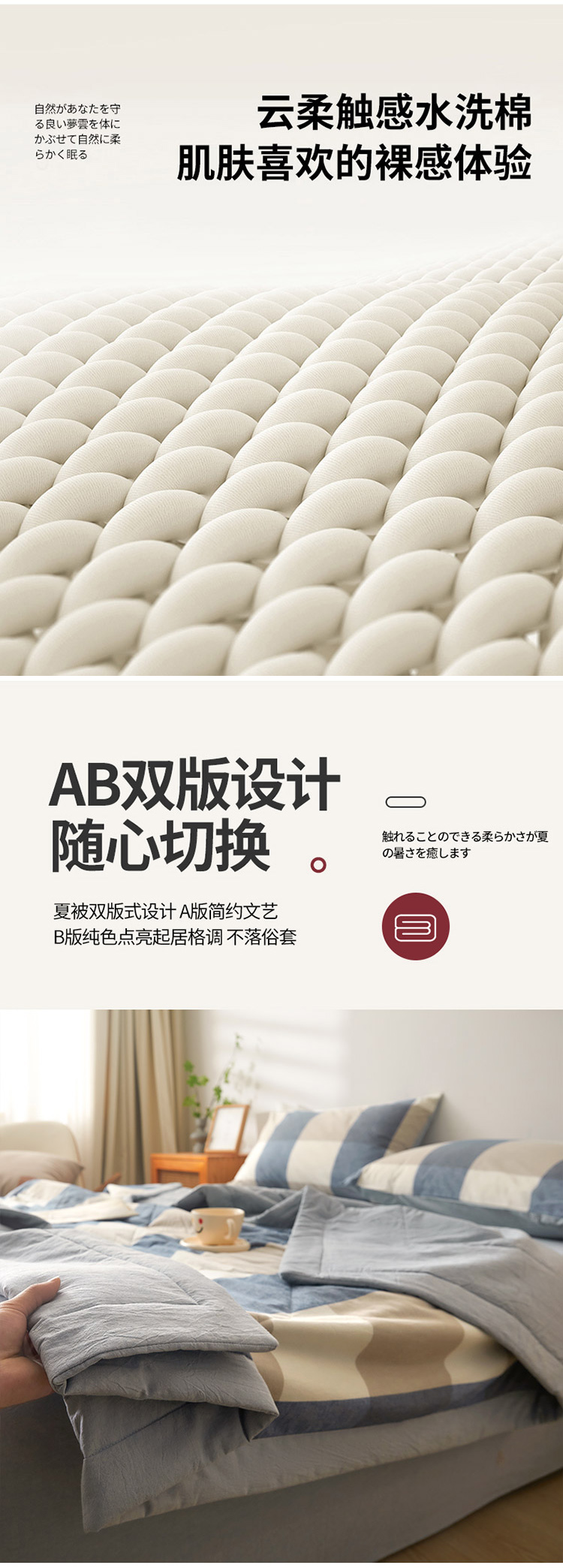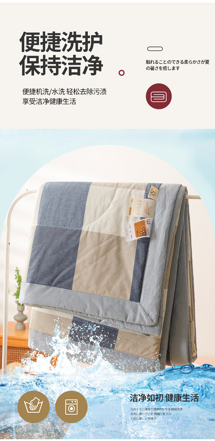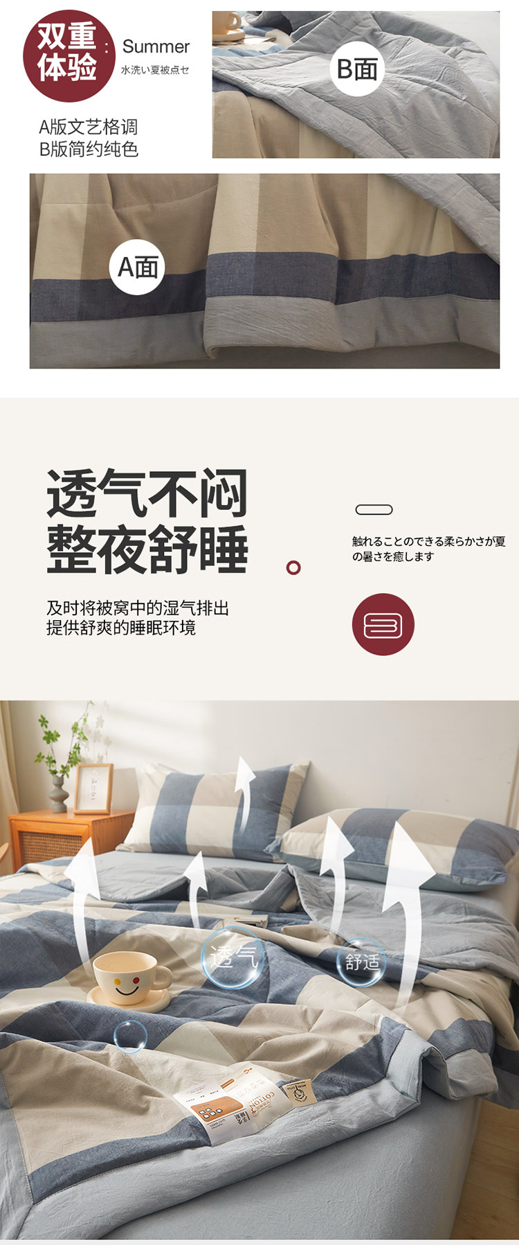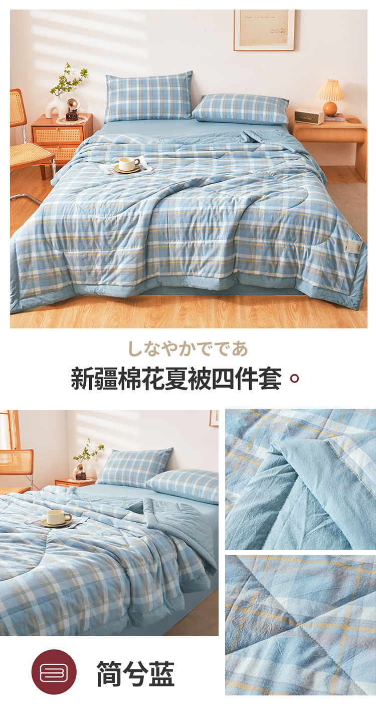 樵纪 简兮 双人被 无印风水洗棉棉花夏被 180x220cm 蓝色(单位:床)