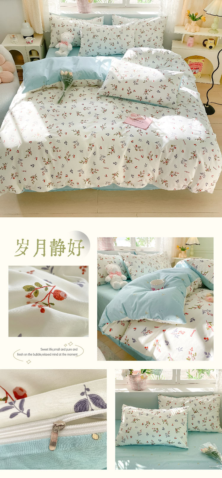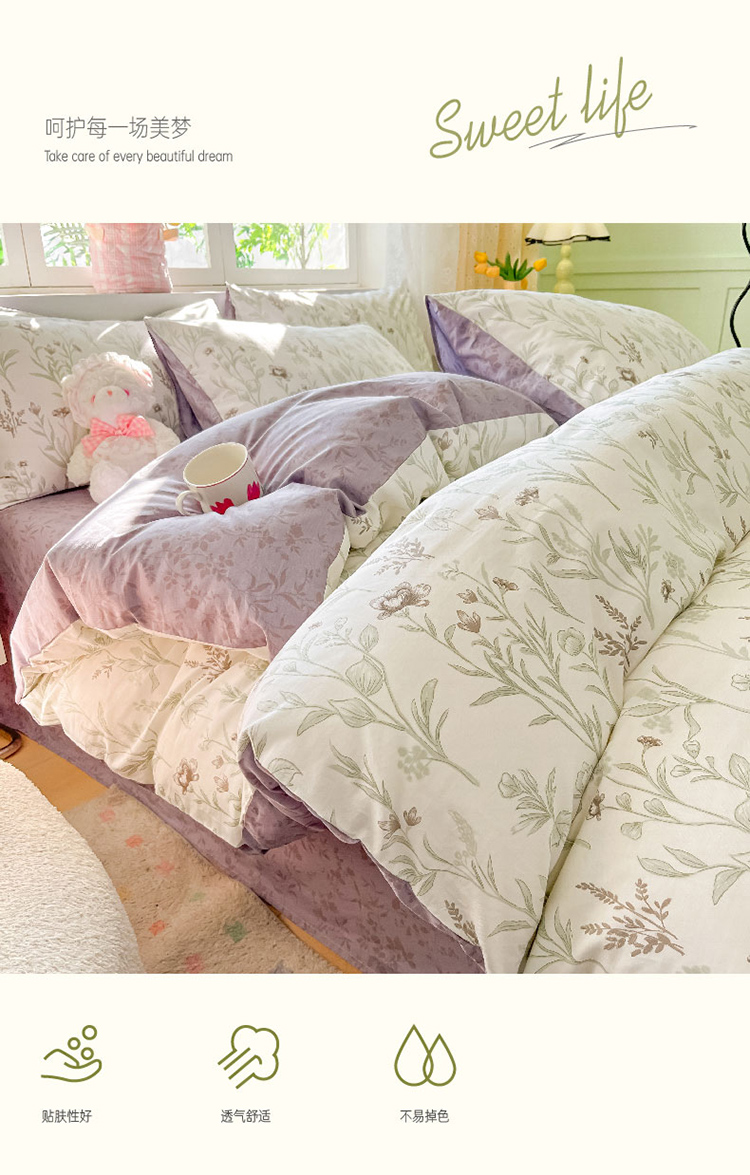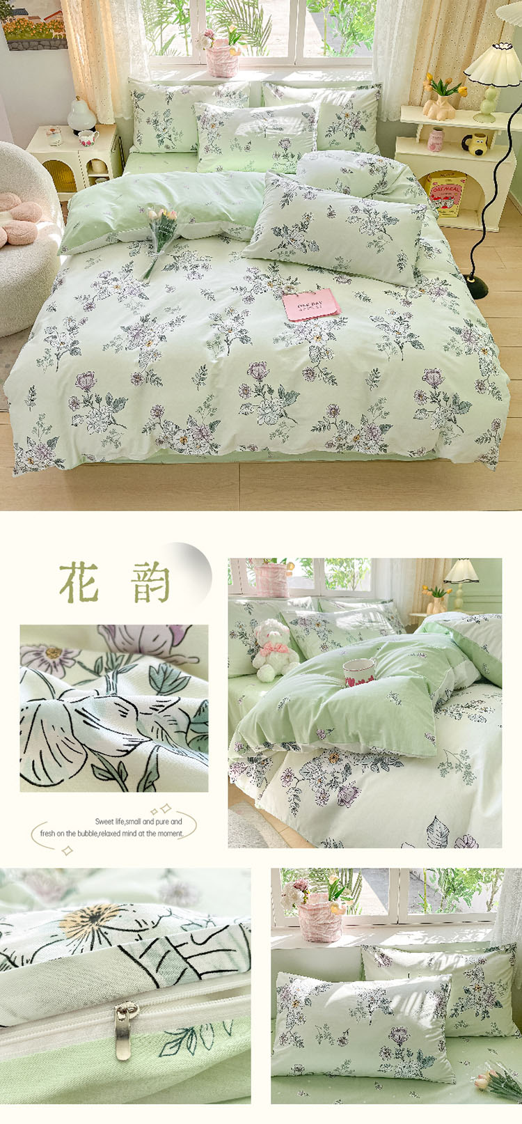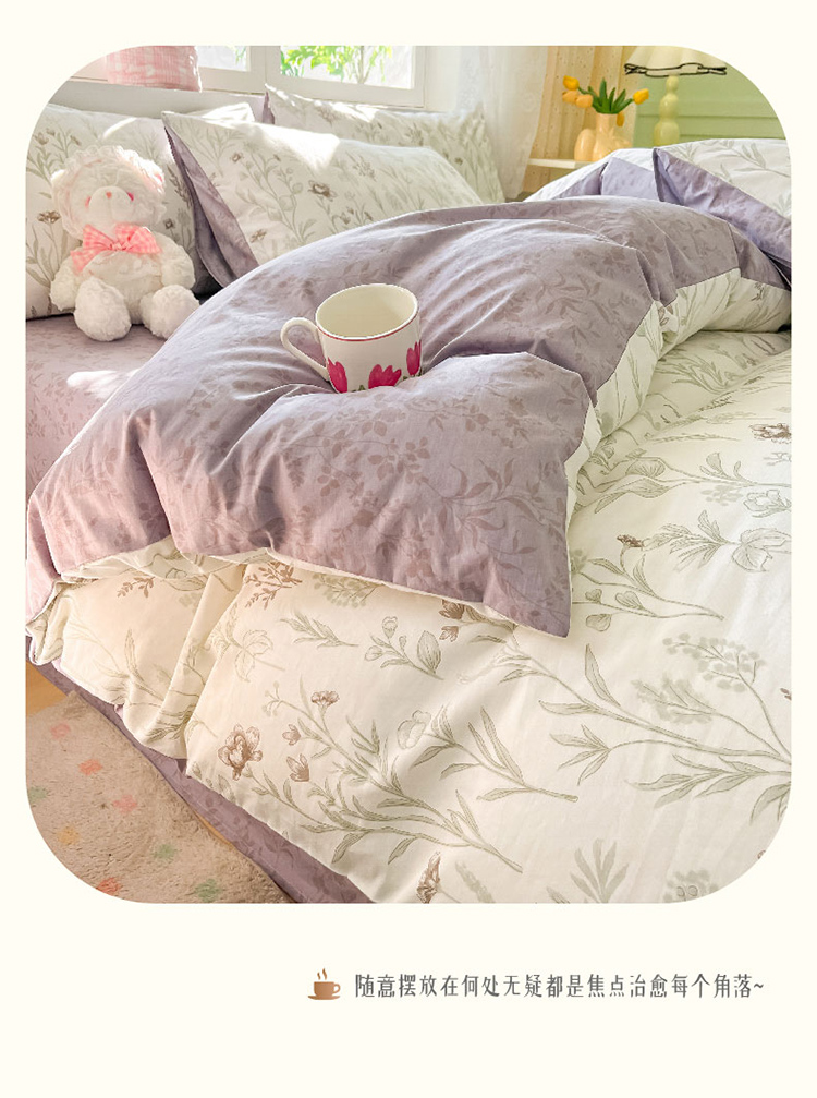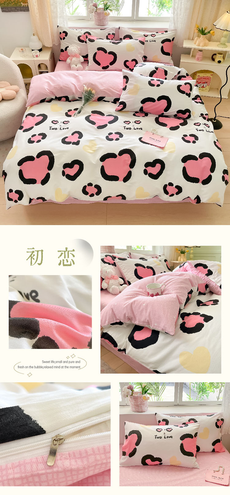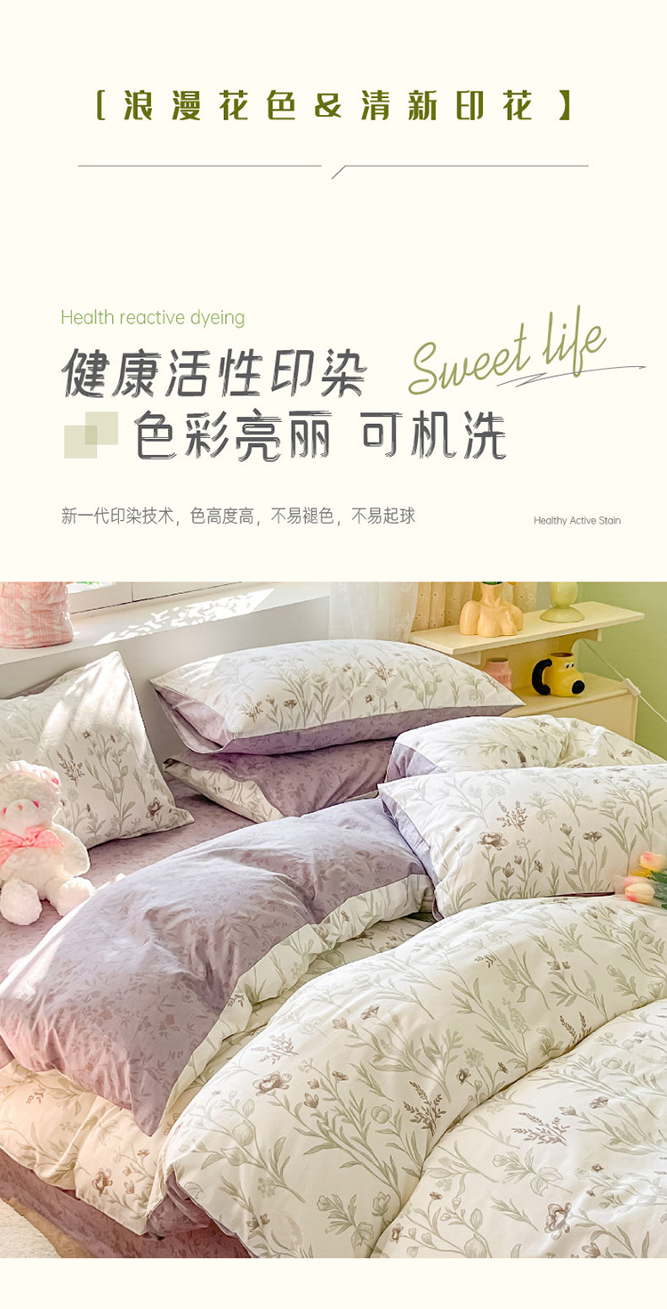 樵纪 初恋 200x230cm 全棉喷气印花四件套 1.5/1.8米床通用款 粉色(单位:套)