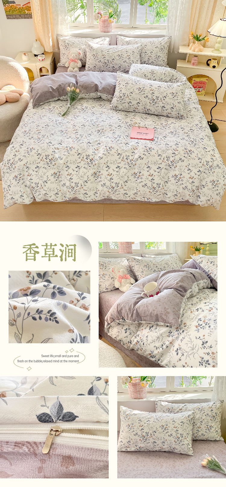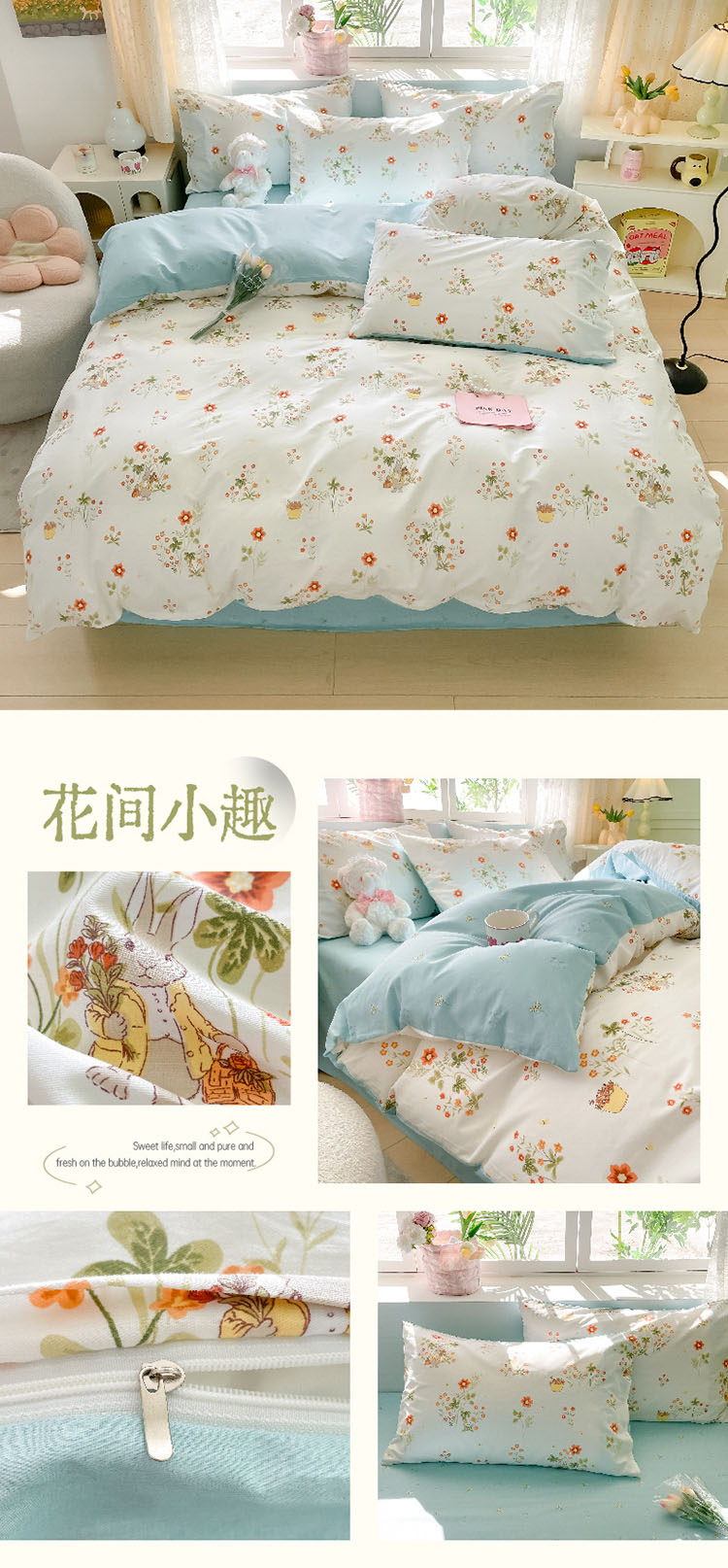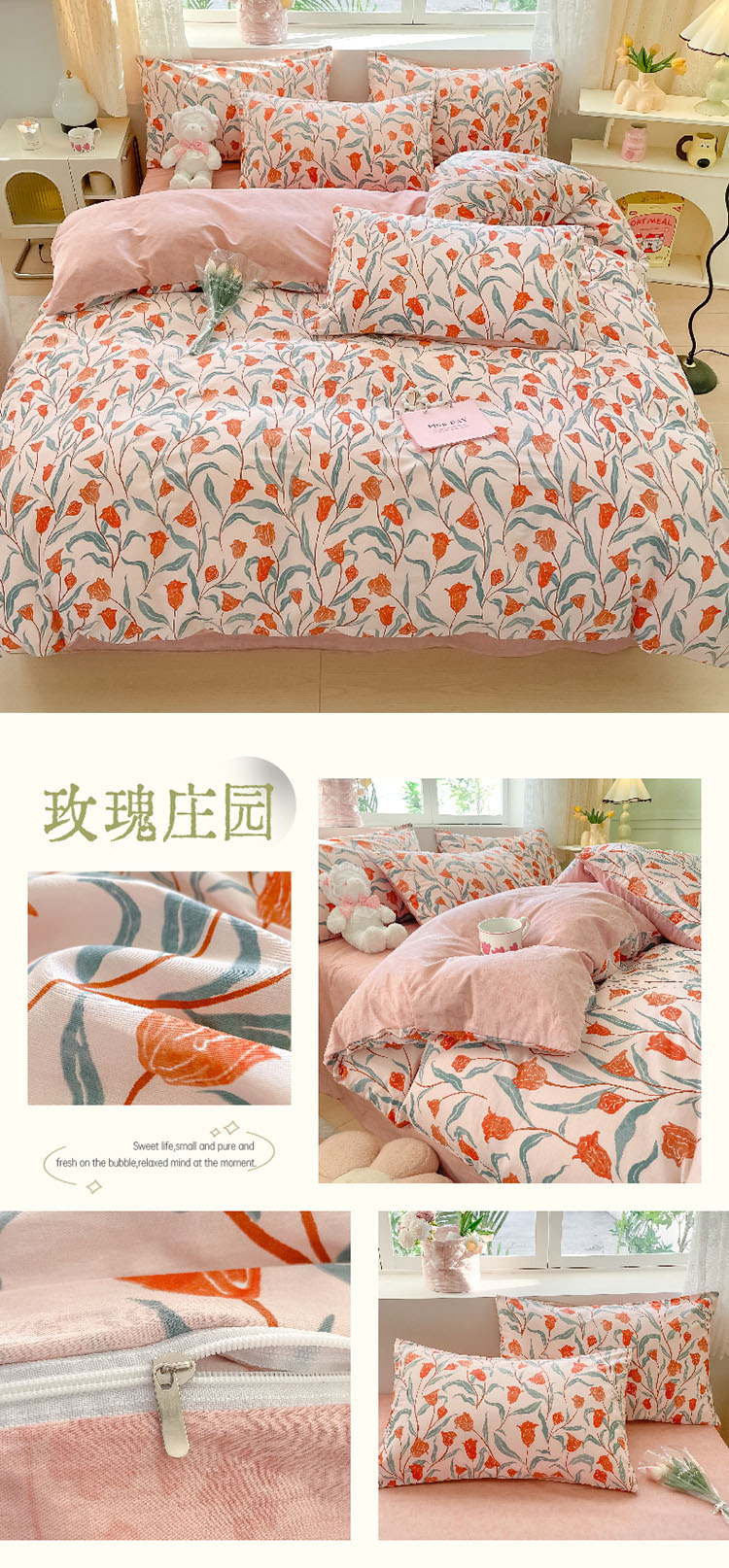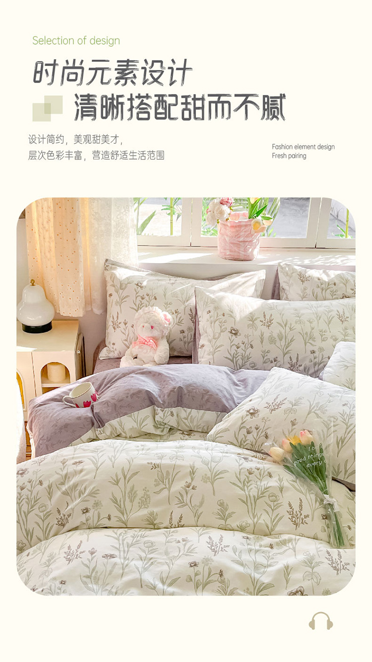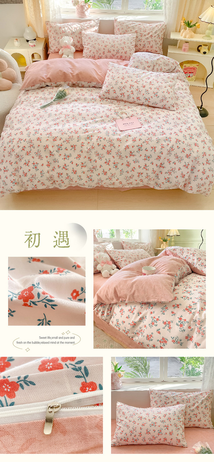 樵纪 初恋 200x230cm 全棉喷气印花四件套 1.5/1.8米床通用款 粉色(单位:套)