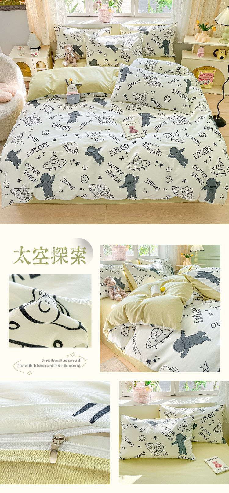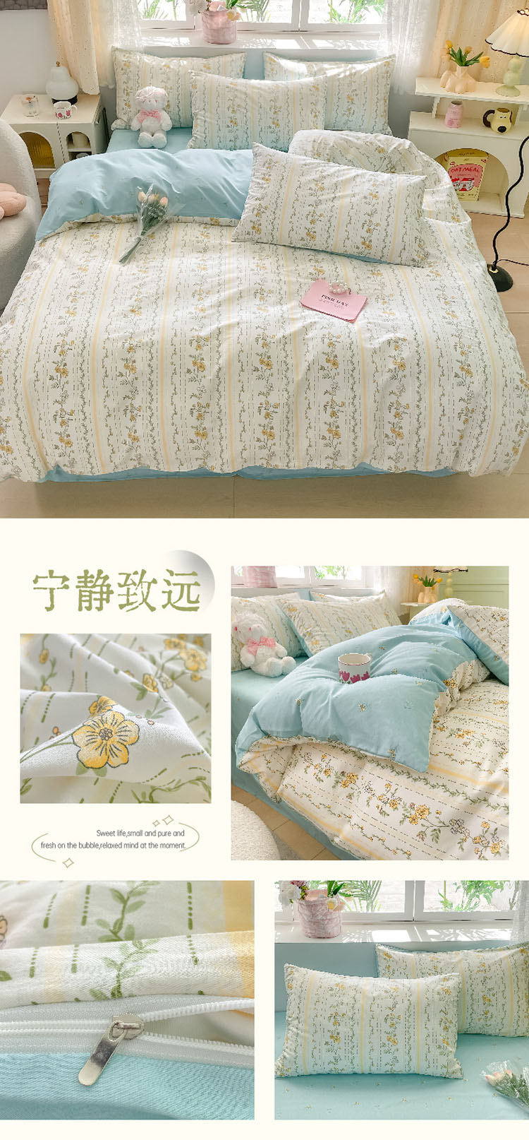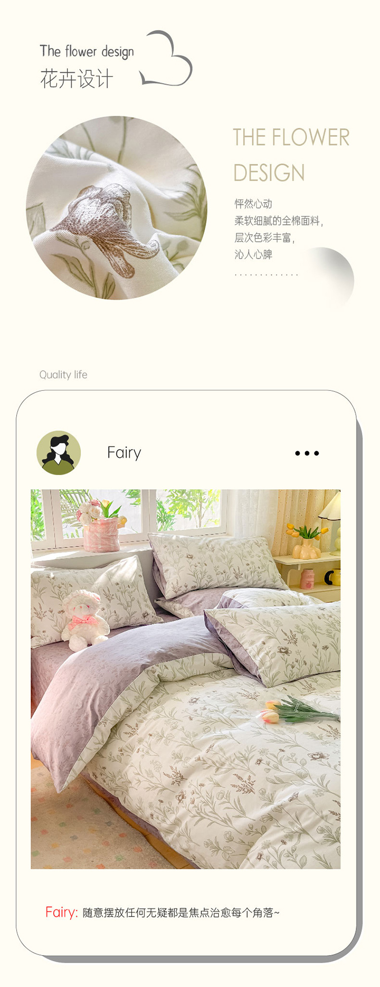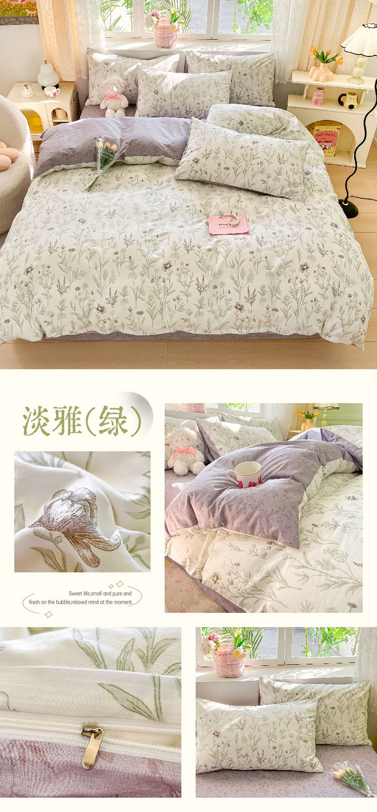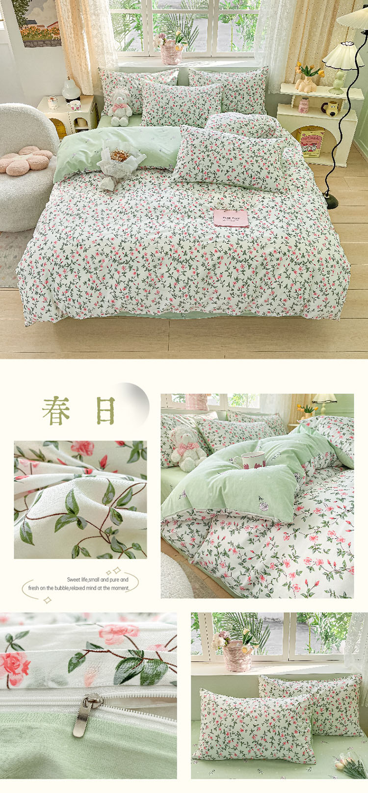 樵纪 初恋 200x230cm 全棉喷气印花四件套 1.5/1.8米床通用款 粉色(单位:套)