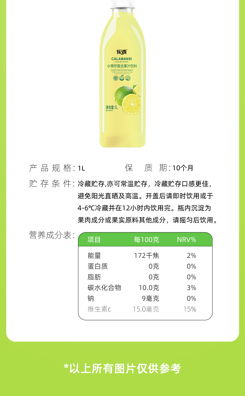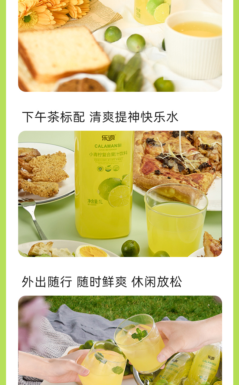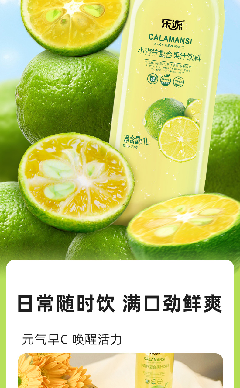 乐源 小青柠复合果汁 1L*2瓶 富含维生素C 香槟黄(单位:组)