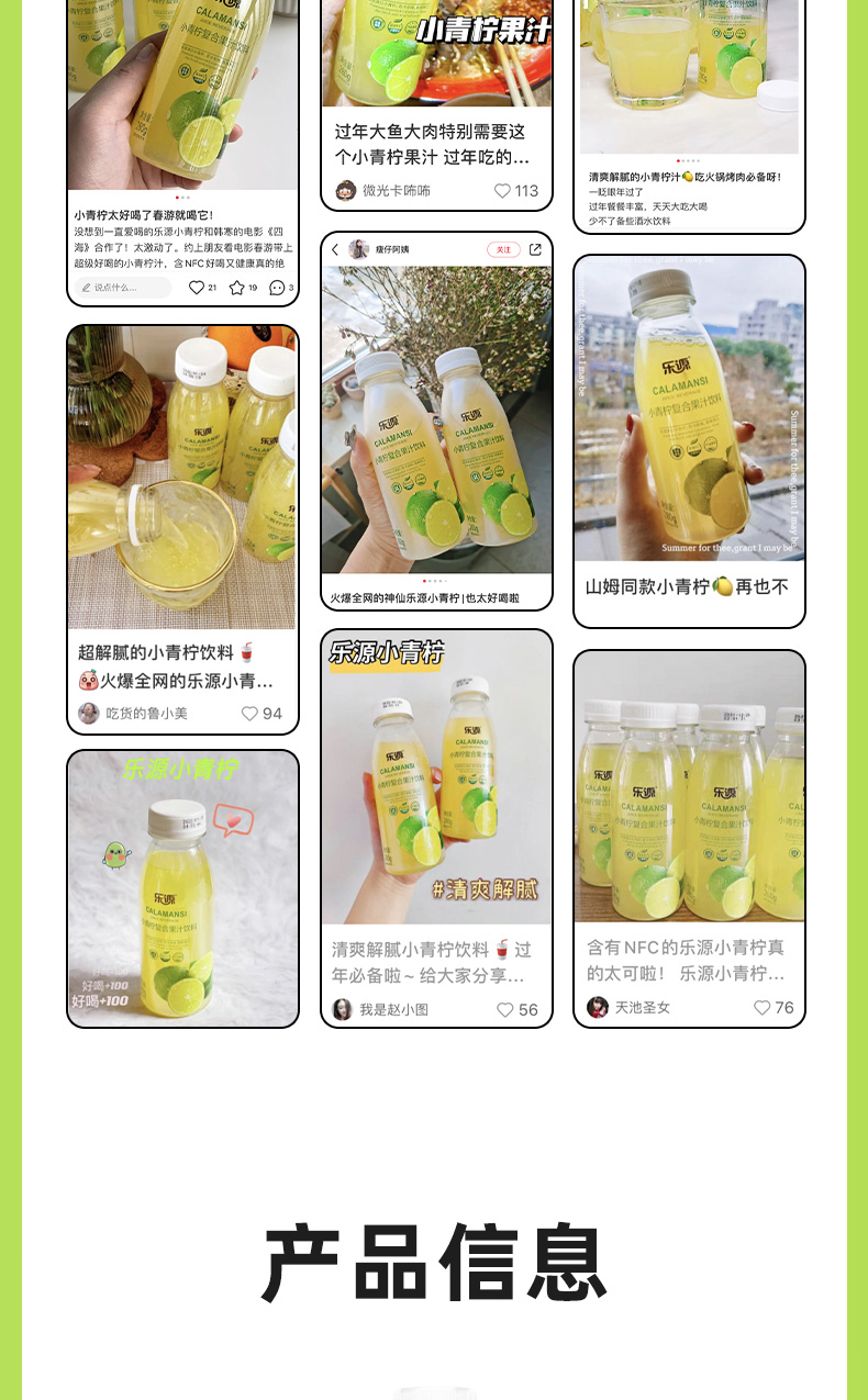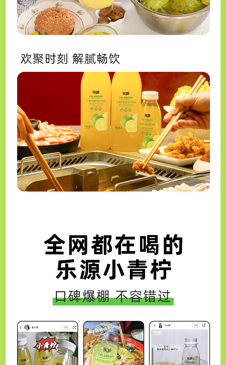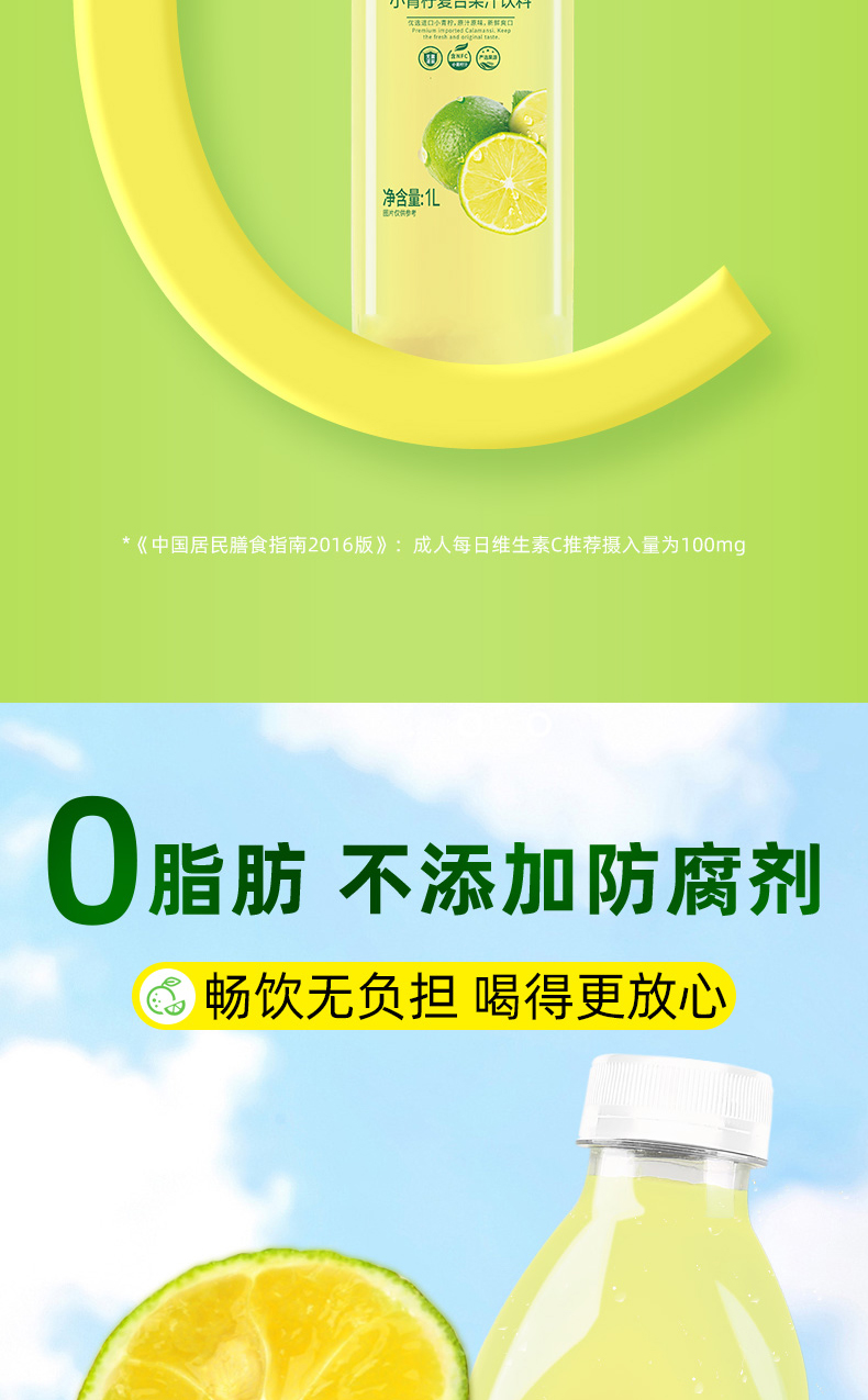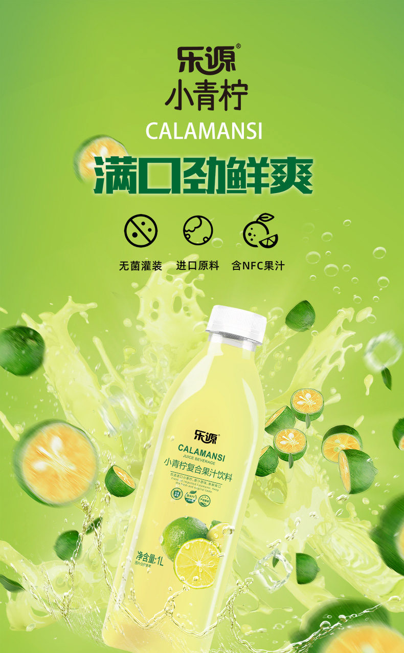 乐源 小青柠复合果汁 1L*2瓶 富含维生素C 香槟黄(单位:组)