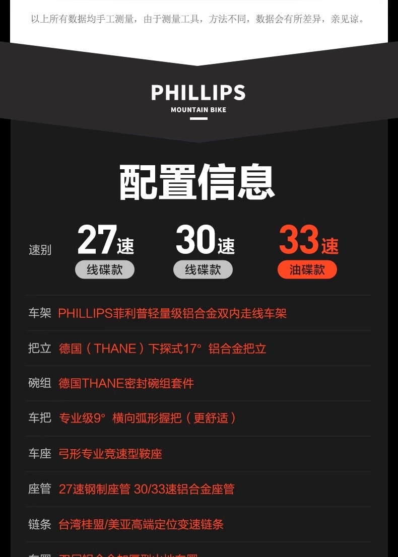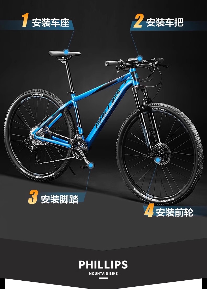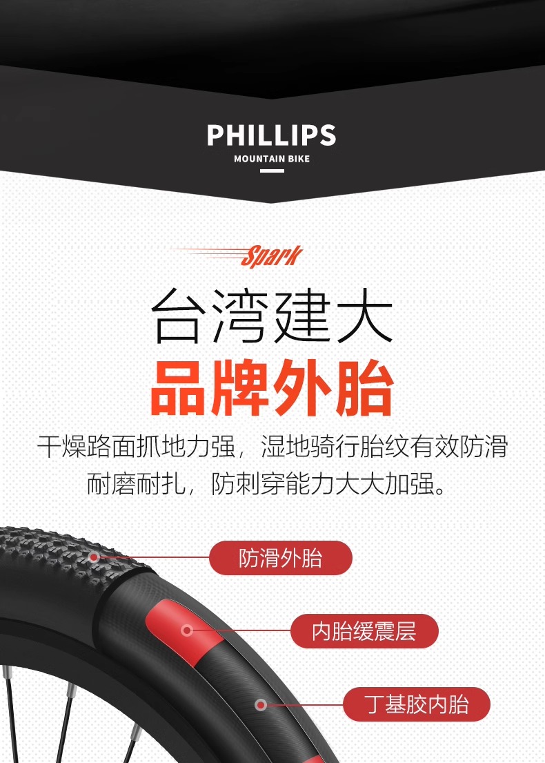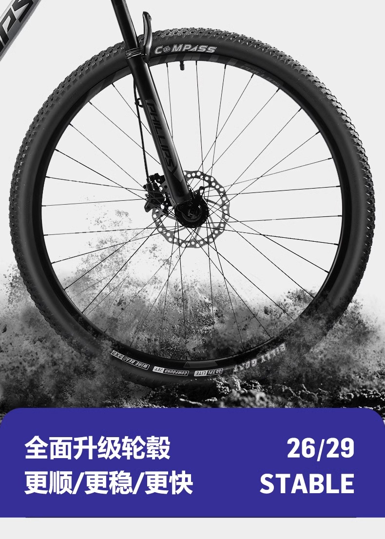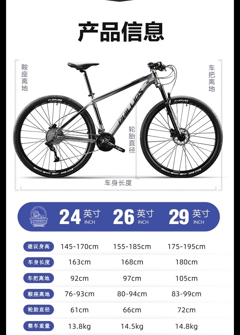 菲利普(PHILLIPS) 山地车 P500 26英寸33速油碟 飓风灰(单位:辆)