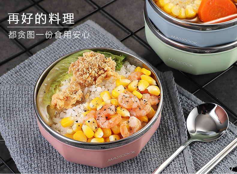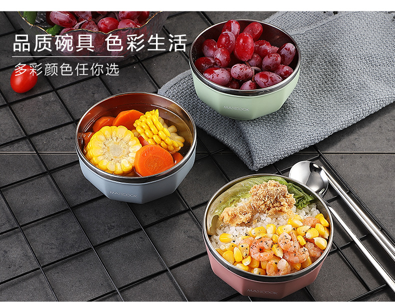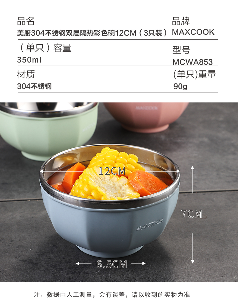 美厨304不锈钢炫彩碗三件套12CM MCWA853(单位:套) 炫彩三色