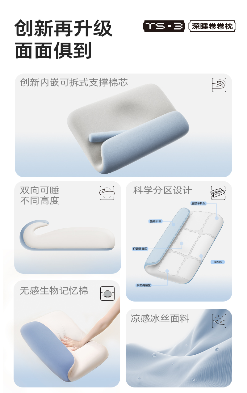 脑洞氛子(EVERYTHINK) 亲肤护颈枕两件套 TX2+TS3 懒人趴枕*1+深睡卷卷枕头*1 混色(单位:套)