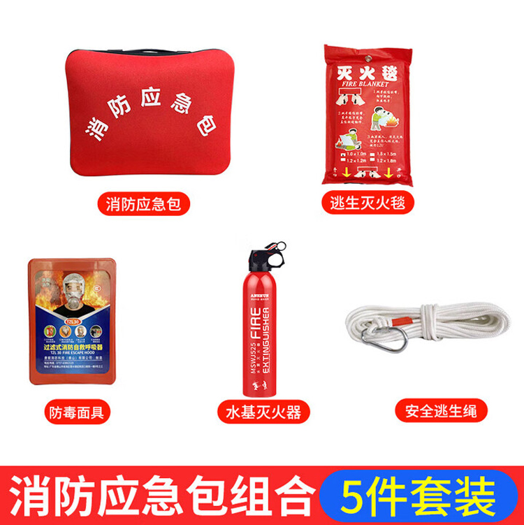 爱备护(AIBEIHU) 消防应急套装五件套 YJ005 42*12*34cm 混色(单位:套)