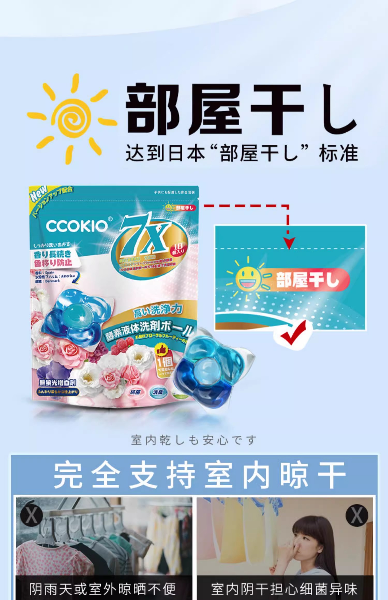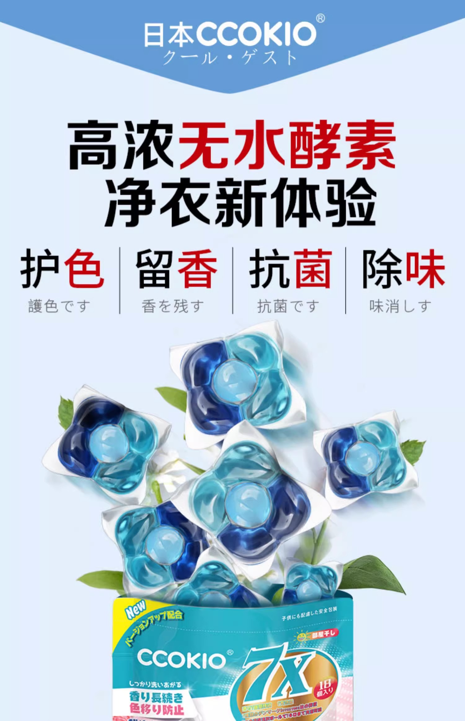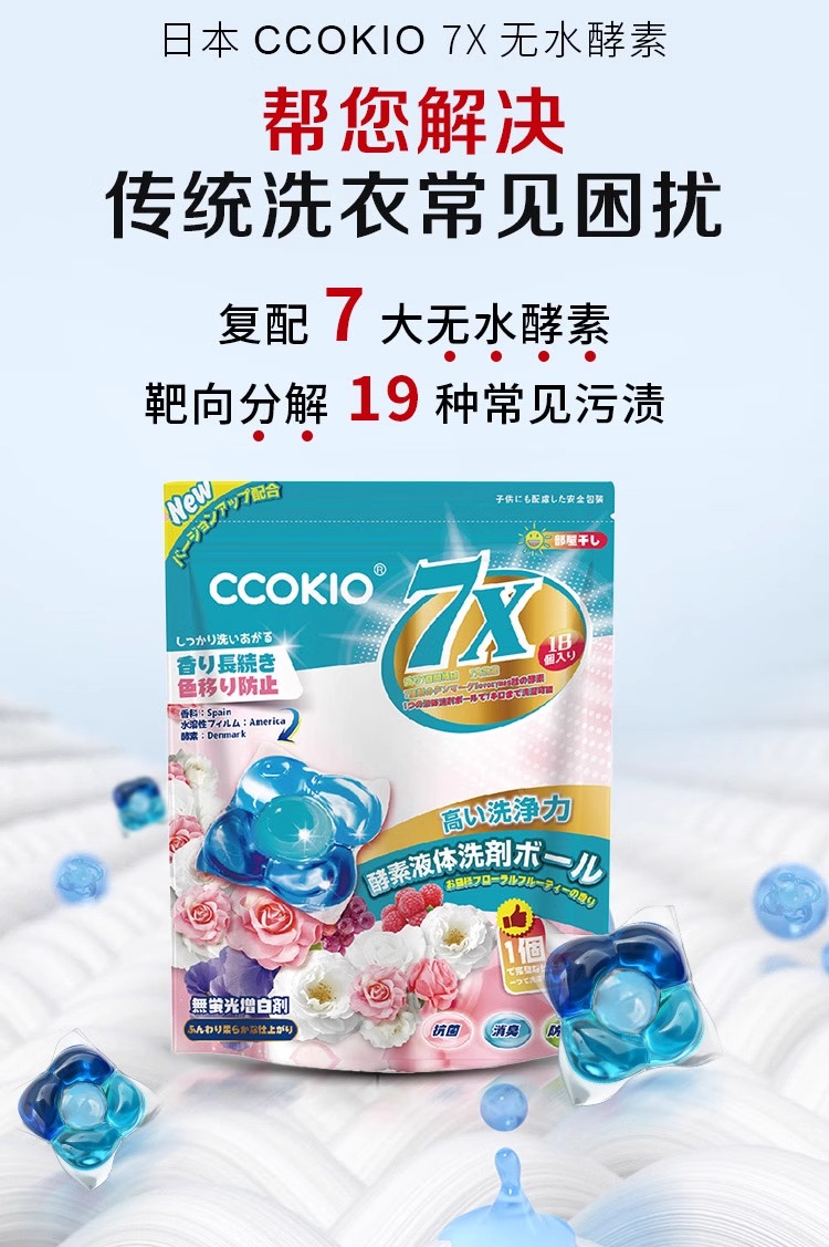 酷优客(CCOKIO) 7X酵素洗衣凝珠 阳光花果香 18颗*2袋 蓝色(单位:组)