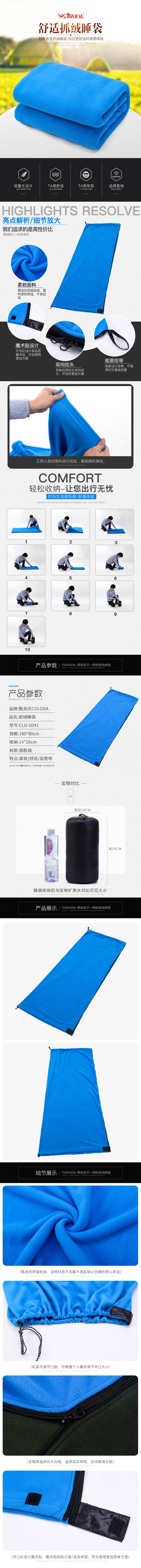 酷龙达(Coloda) 单面绒睡袋床单 CLD-SD41 180*80cm 宝蓝色(单位:条)